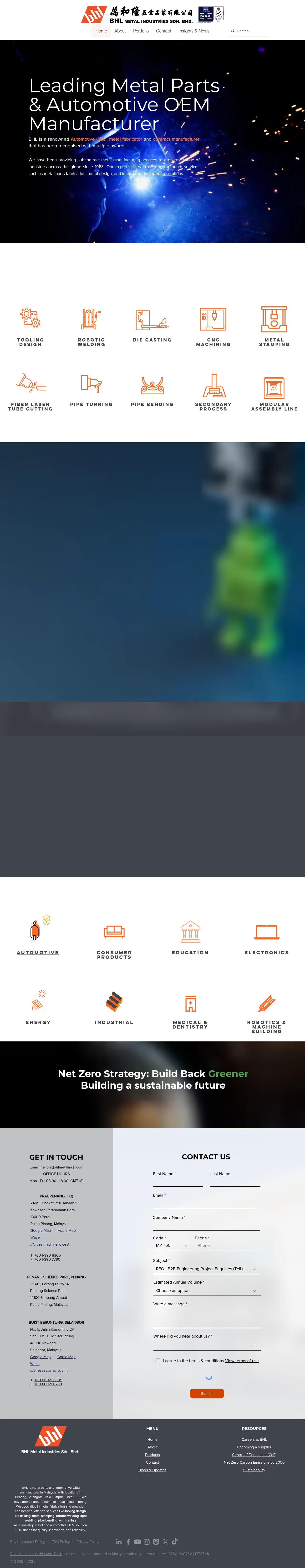 BHL is a Malaysian metal parts and automotive OEM manufacturer with facilities in Penang and Selangor/Kuala Lumpur. Established in 1963, the company provides subcontract metal manufacturing and integrated engineering services to automotive and other industrial customers worldwide. Its capabilities cover tooling design, die casting, metal stamping, welding, pipe bending and precision machining for prototyping through volume production. BHL operates as a contract manufacturer serving a range of sectors including automotive, electronics and industrial equipment.