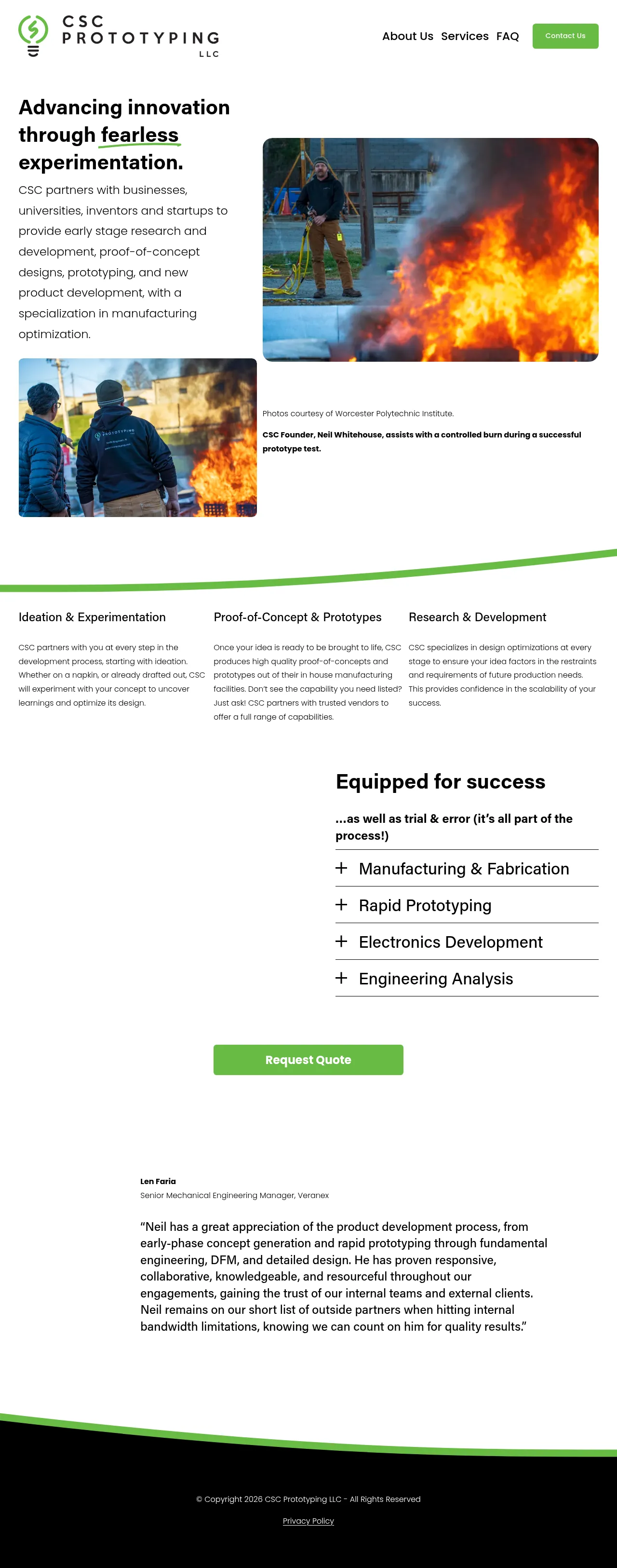 CSC Prototyping LLC is a product development and fabrication firm specializing in prototyping, proof-of-concept development, and test fixture manufacturing. They support clients from the initial ideation phase through to design optimization, focusing on scalability and manufacturability. The company serves a diverse range of sectors, including medical devices, academic research, consumer goods, and the Department of Defense. With over 18 years of experience, they combine in-house fabrication services with strategic vendor partnerships to manage complex project lifecycles. Their approach prioritizes cross-industry knowledge sharing to deliver innovative engineering solutions.