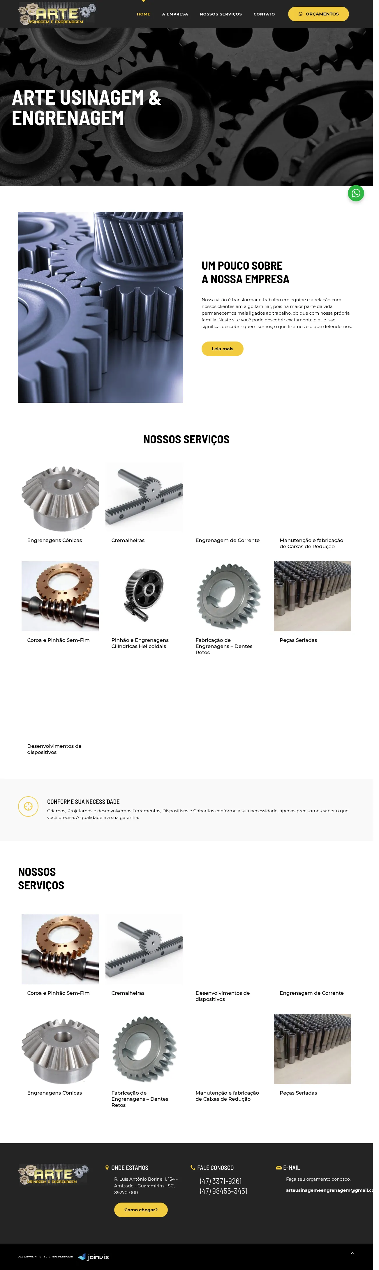 R. Luís Antônio Borinelli, 134 - Amizade, Guaramirim - SC, 89270-000, Brazil, Guaramirim, Santa Catarina, Federative Republic of Brazil(47) 98455-3451arteusinagemeengrenagem@gmail.comhttps://arteusinagemeengrenagem.com.br/