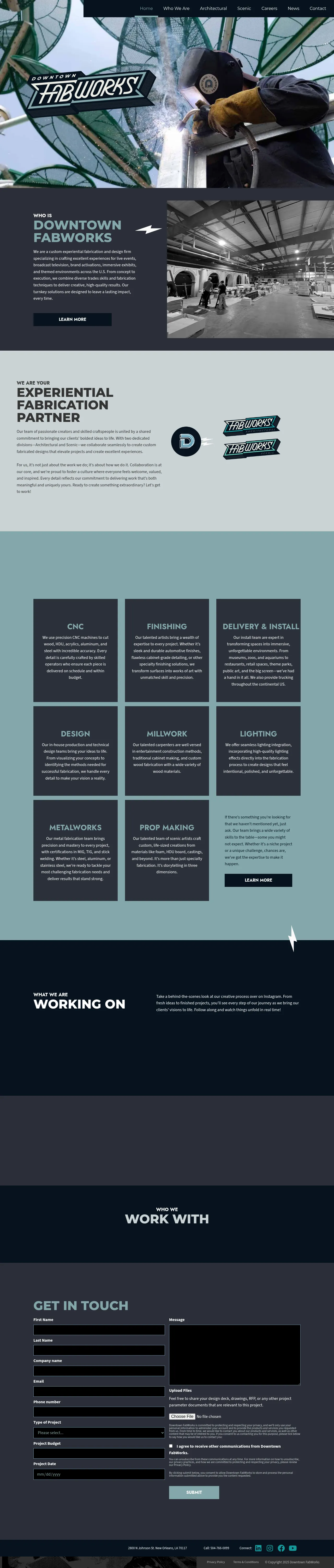 Downtown FabWorks is a custom fabrication and design firm specializing in experiential projects for live events, broadcast television, brand activations, immersive exhibits, and themed environments. The company offers end-to-end services from concept through execution, combining diverse trades skills and precision CNC capabilities. Projects are managed to deliver fabricated elements on schedule and within budget.
