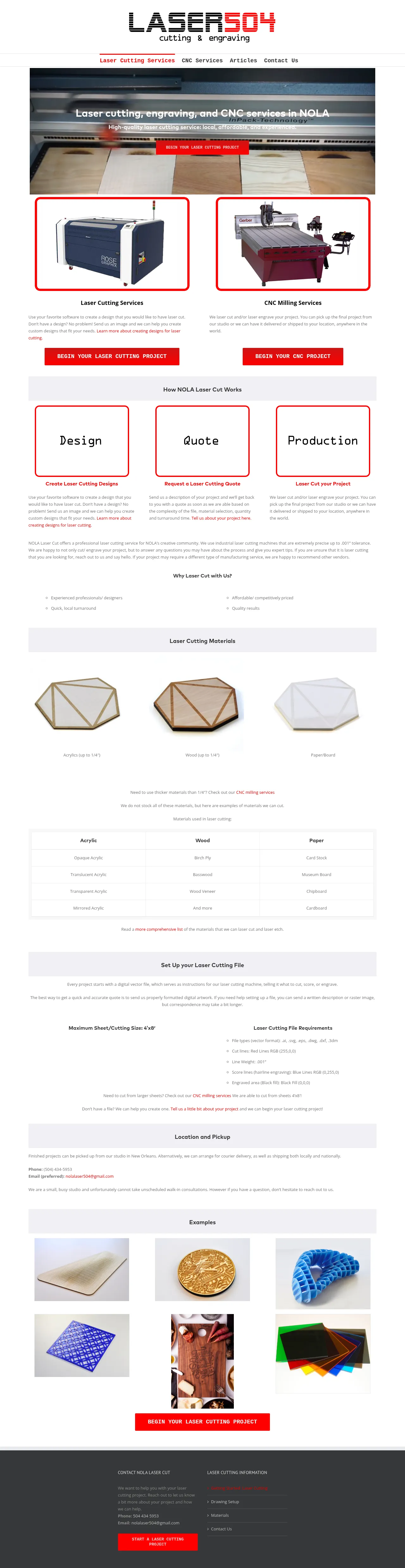 Provides laser cutting, laser engraving, and CNC milling services in New Orleans (NOLA). The company performs precision fabrication and finishing work for projects requiring laser and CNC processes. It works with wood materials and accepts project inquiries via email or phone.