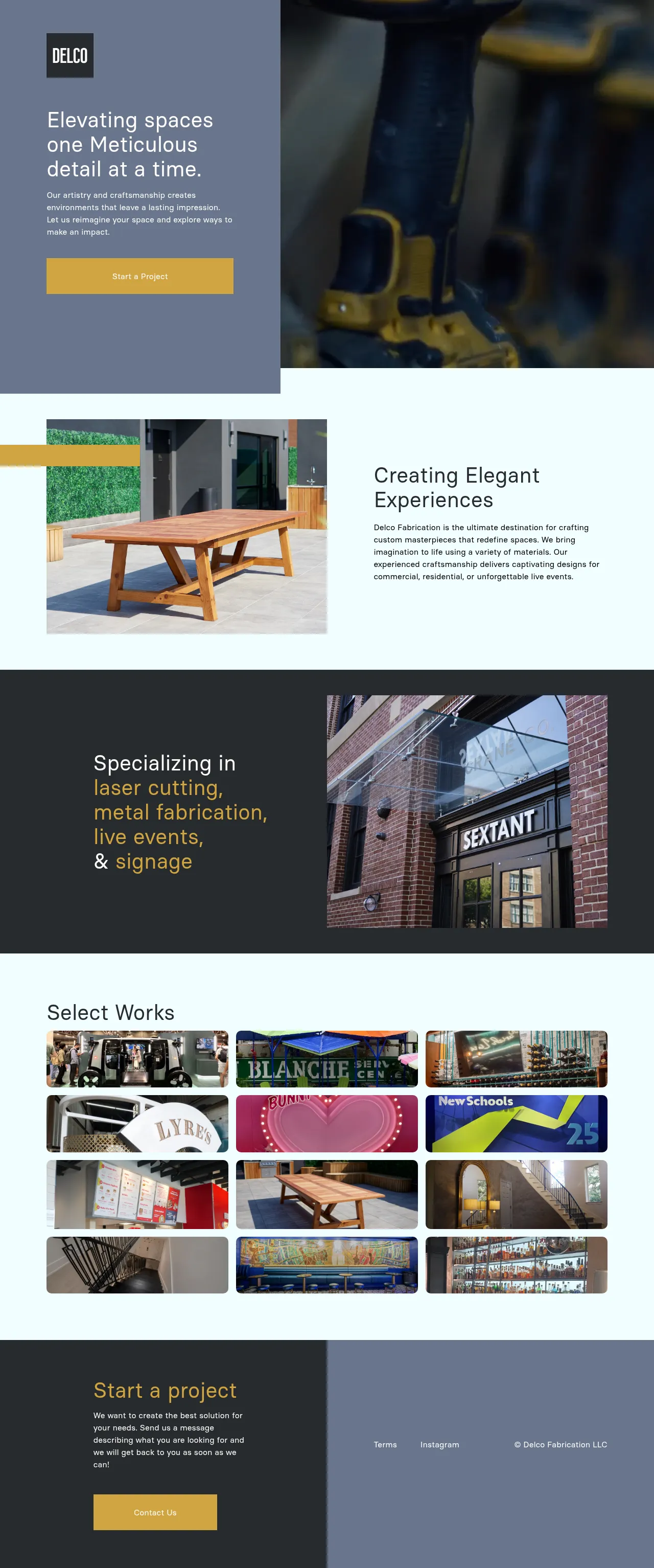 Delco Fabrication provides custom fabrication services for commercial, residential and live-event applications. The company produces bespoke architectural and decorative elements using a range of fabrication techniques. Its team handles design, fabrication and installation to meet client specifications.