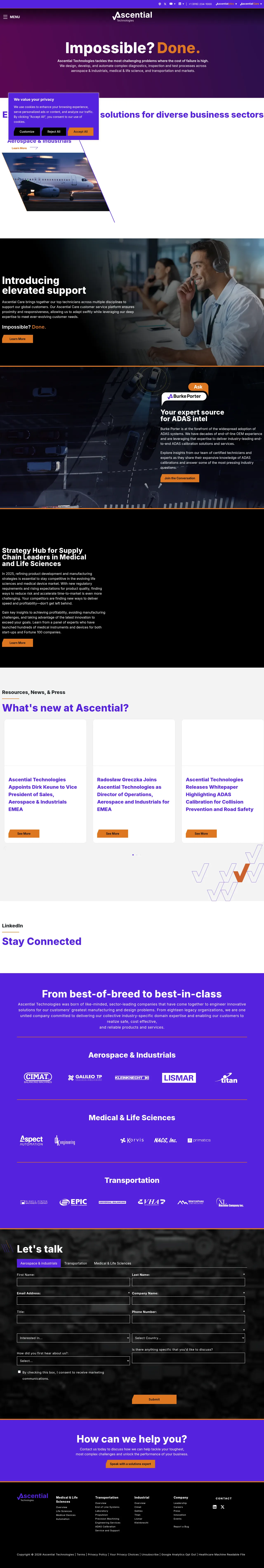 Ascential Technologies, formerly known as Burke Porter Group, is a global provider of advanced engineering and manufacturing solutions. The company serves the transportation, medical device, life sciences, and industrial sectors with specialized expertise in complex automation and end-of-line systems. Their capabilities include precision machining, ADAS calibration, and the integration of sophisticated manufacturing infrastructure. Through a collective network of legacy organizations, they provide end-to-end design, implementation, and lifecycle support. The company focuses on solving critical production challenges for high-stakes environments where performance, reliability, and regulatory compliance are essential.