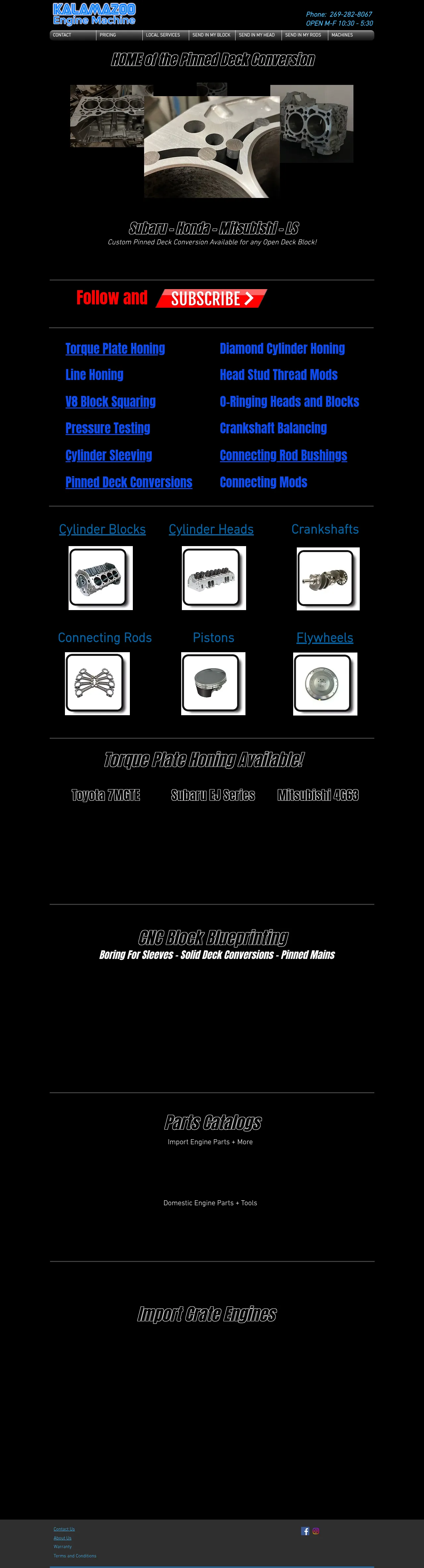 Kalamazoo Engine Machine is a specialist engine remanufacturing and machine shop based in Plainwell, Michigan. The company provides a comprehensive suite of precision machining services for domestic and import automotive engines, including engine blocks, cylinder heads, crankshafts, and connecting rods. Key technical capabilities include pinned deck conversions, CNC porting, torque plate honing, and cylinder sleeving. They serve the performance automotive market with expertise in specific platforms such as Subaru EJ series, Mitsubishi 4G63, and Toyota 7MGTE. The facility focuses on engine blueprinting and reconditioning to restore performance and reliability to critical rotating assemblies.