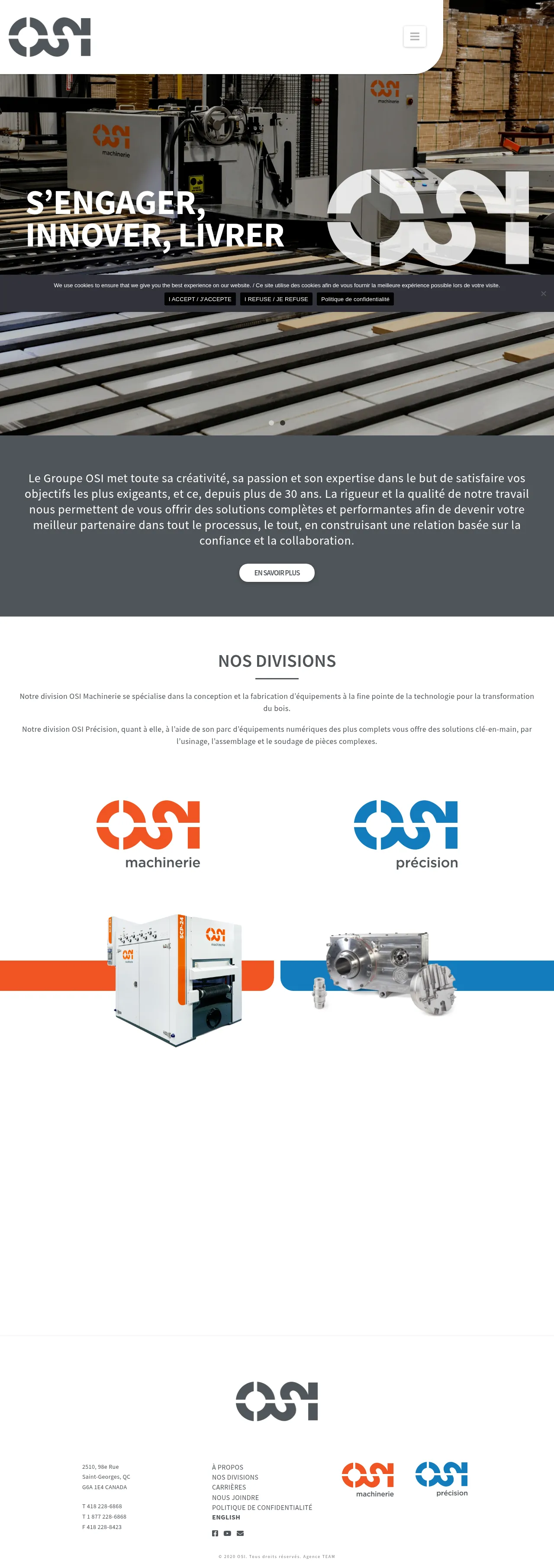Groupe OSI is a Canadian manufacturing firm operating through two primary divisions: OSI Machinerie and OSI Précision. The company specializes in the design, fabrication, and installation of specialized machinery for the wood processing industry alongside custom machining, welding, and mechanical assembly services. Established in 1987, the firm leverages Industry 4.0 digital technologies to provide turnkey solutions for complex mechanical components. They focus on delivering precision, productivity, and reliability through collaborative partnerships and rigorous operational processes. The company supports clients throughout the product lifecycle, from initial design and manufacturing to aftermarket technical support.