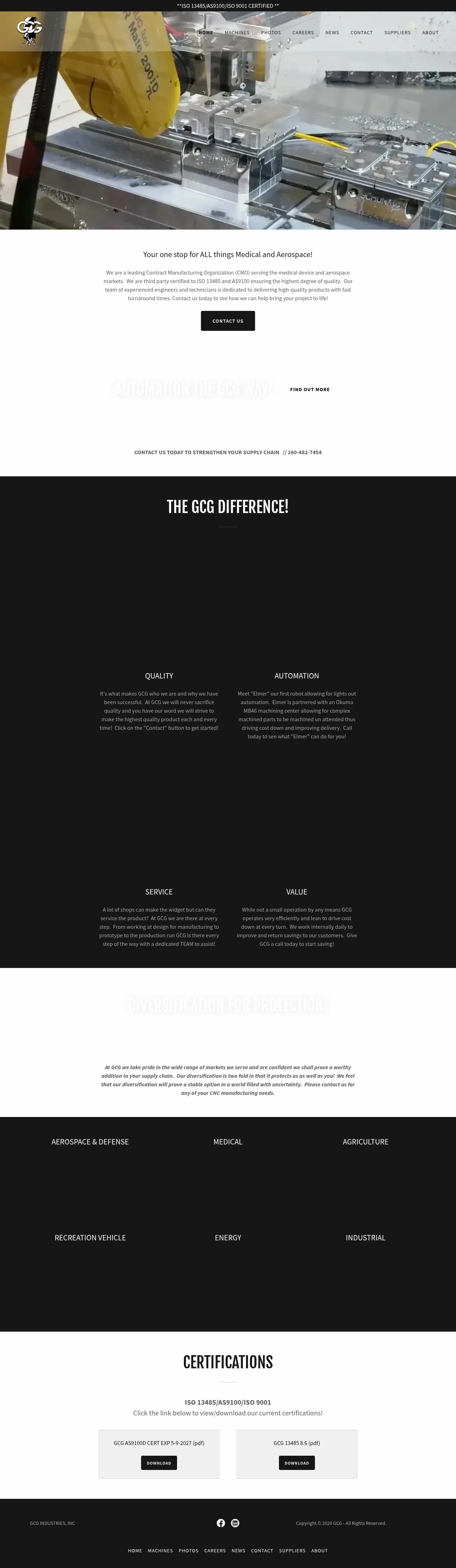 GCG Industries is a multi-sector manufacturing firm specializing in precision CNC machining. The company serves a diverse range of industries, including medical, aerospace, agriculture, energy, and recreational vehicle manufacturing. By maintaining a focus on diversification, they provide robust production solutions tailored to high-precision requirements. Their facility integrates advanced machining capabilities to support both complex and high-volume components. The company operates with a commitment to stringent quality standards to ensure reliable results for all client sectors.