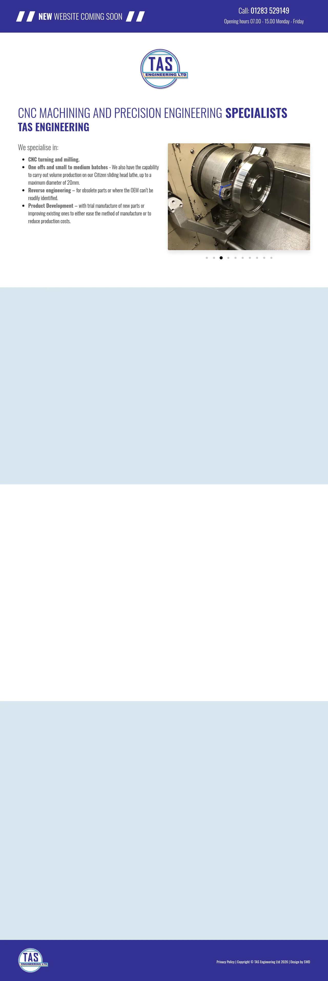 TAS Engineering Ltd provides specialized CNC machining and precision engineering services tailored for both one-off prototypes and small to medium-volume production runs. The company maintains expertise in reverse engineering and comprehensive product development, assisting clients with manufacturing optimization and cost reduction strategies. Their technical capabilities include CNC milling and turning, supported by vibratory finishing processes. The facility is equipped to handle diverse production requirements, from precision sliding head lathe work to larger-scale machining center operations. TAS Engineering emphasizes quality and process efficiency in the manufacture of new and existing mechanical components.