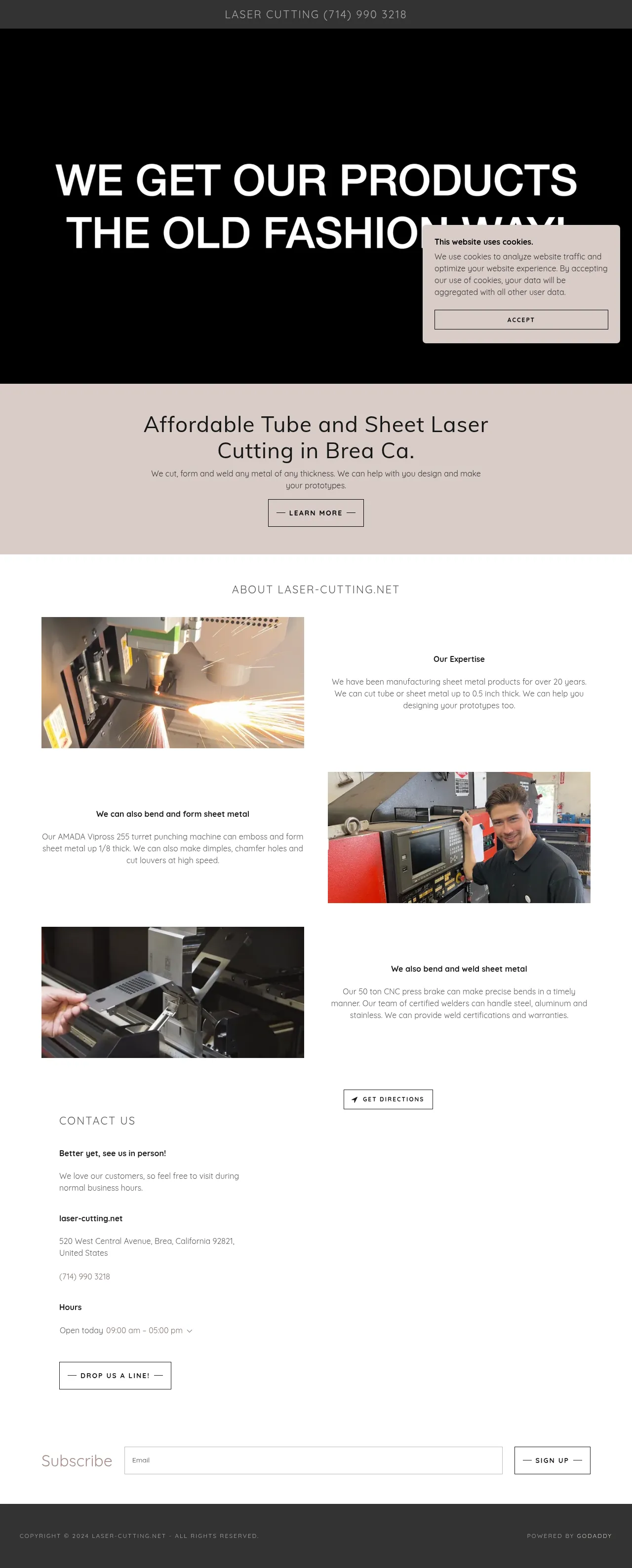 LASER-Cutting.net is a Brea-based manufacturing firm specializing in precision metal fabrication with over 20 years of industry experience. The company provides comprehensive services including laser cutting, sheet metal forming, turret punching, and structural welding. They maintain the capability to process both tube and sheet metal materials up to 0.5 inches in thickness. Beyond core fabrication, the team offers professional design assistance and support for prototype development. The facility utilizes advanced CNC technology to ensure high-speed production and precise dimensional accuracy for various industrial applications.