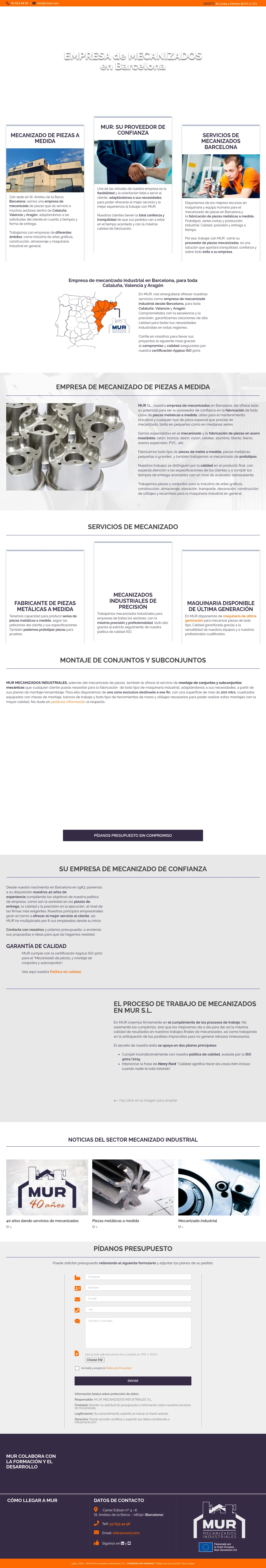 M.U.R. Mecanizados Industriales, S.L. is an industrial machining company based in St. Andreu de la Barca, serving clients throughout Catalonia, Valencia, and Aragon. With over 40 years of experience, the company specializes in custom metal parts manufacturing, prototyping, and the assembly of mechanical components. They support a diverse range of sectors including graphic arts, construction, logistics, and industrial machinery. The firm is committed to strict process compliance and high-precision quality standards, ensuring reliable delivery timelines for all projects.