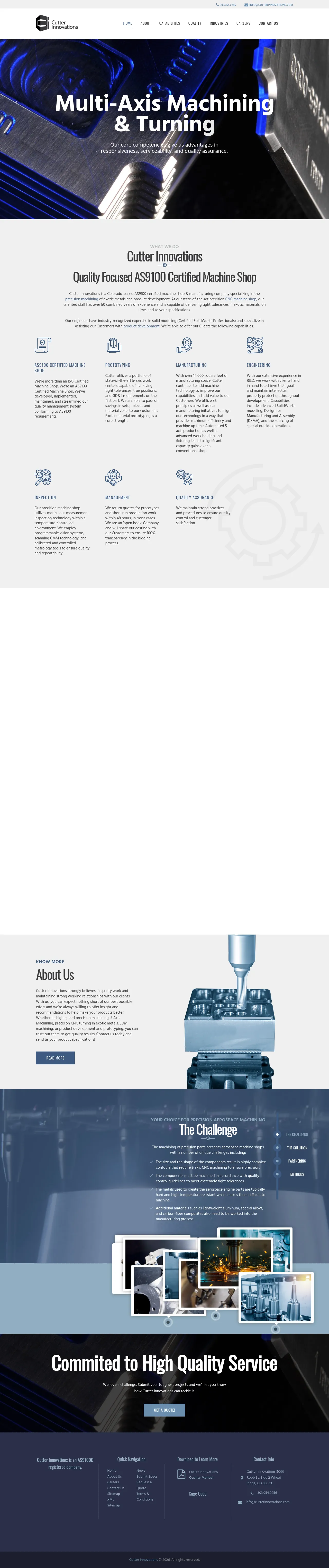 Cutter Innovations is a Colorado-based, female-owned manufacturing company specializing in precision machining for the aerospace and alternative energy industries. The firm provides comprehensive product development services, including solid modeling, prototyping, and low-to-mid volume production. Key capabilities include 5-axis machining, wire EDM, conventional milling, and turning, all supported by a quality management system. They distinguish themselves through an open-book bidding policy, activity-based costing, and a focus on transparency and customer collaboration. With over 50 years of combined team experience, the company maintains high precision standards within a temperature-controlled, AS9100-certified facility.