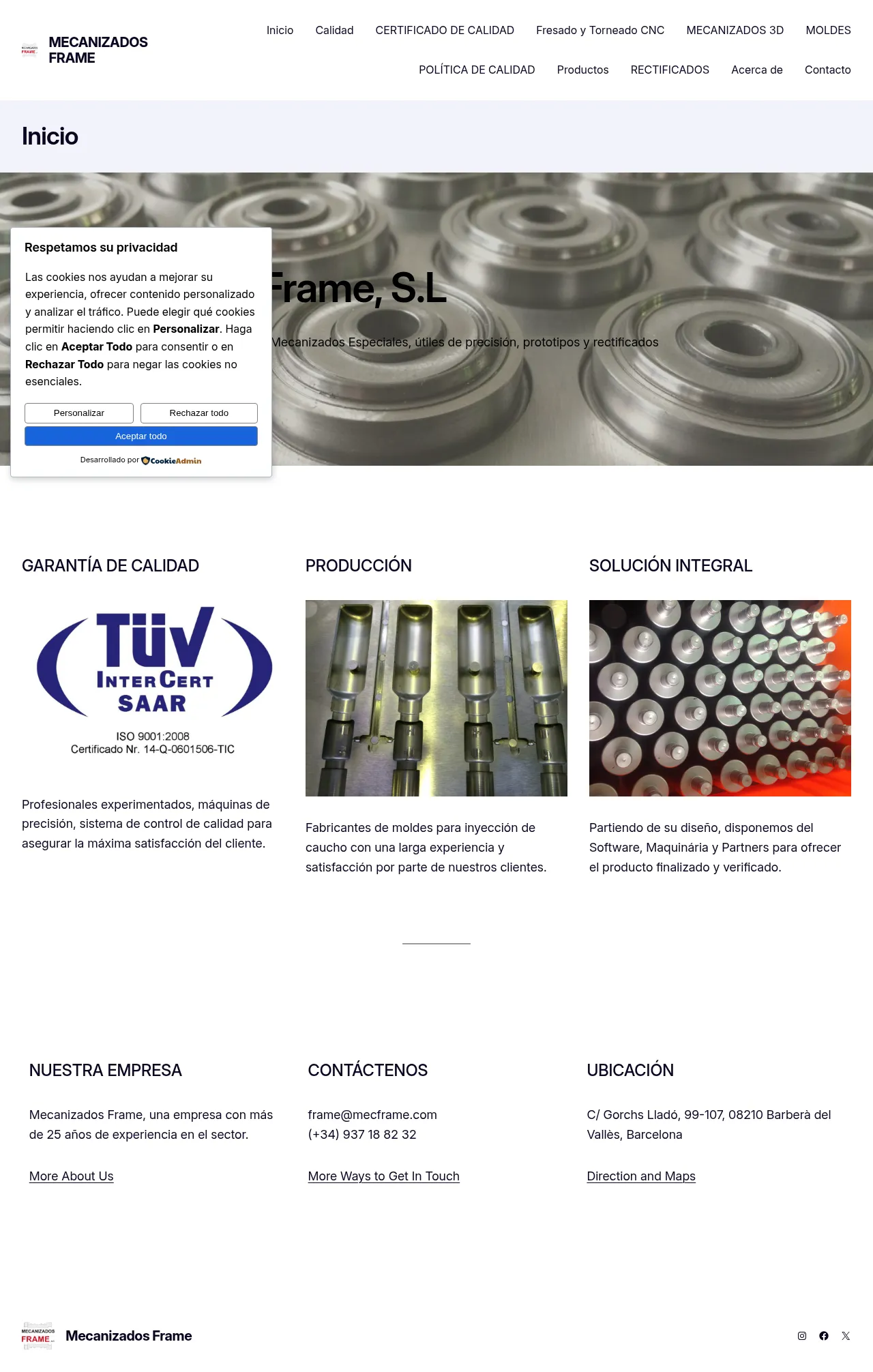 Mecanizados Frame, S.L. is an industrial manufacturing company with over 25 years of experience in specialized machining and precision engineering. The company provides a range of services including CNC milling, turning, 3D machining, and precision grinding. They specialize in the design and manufacturing of injection molds for rubber production. Utilizing advanced software and production machinery, the firm manages projects from initial design through to final verification. Serving a diverse client base, the company maintains a focus on high-quality standards and technical reliability for all custom prototypes and tools.