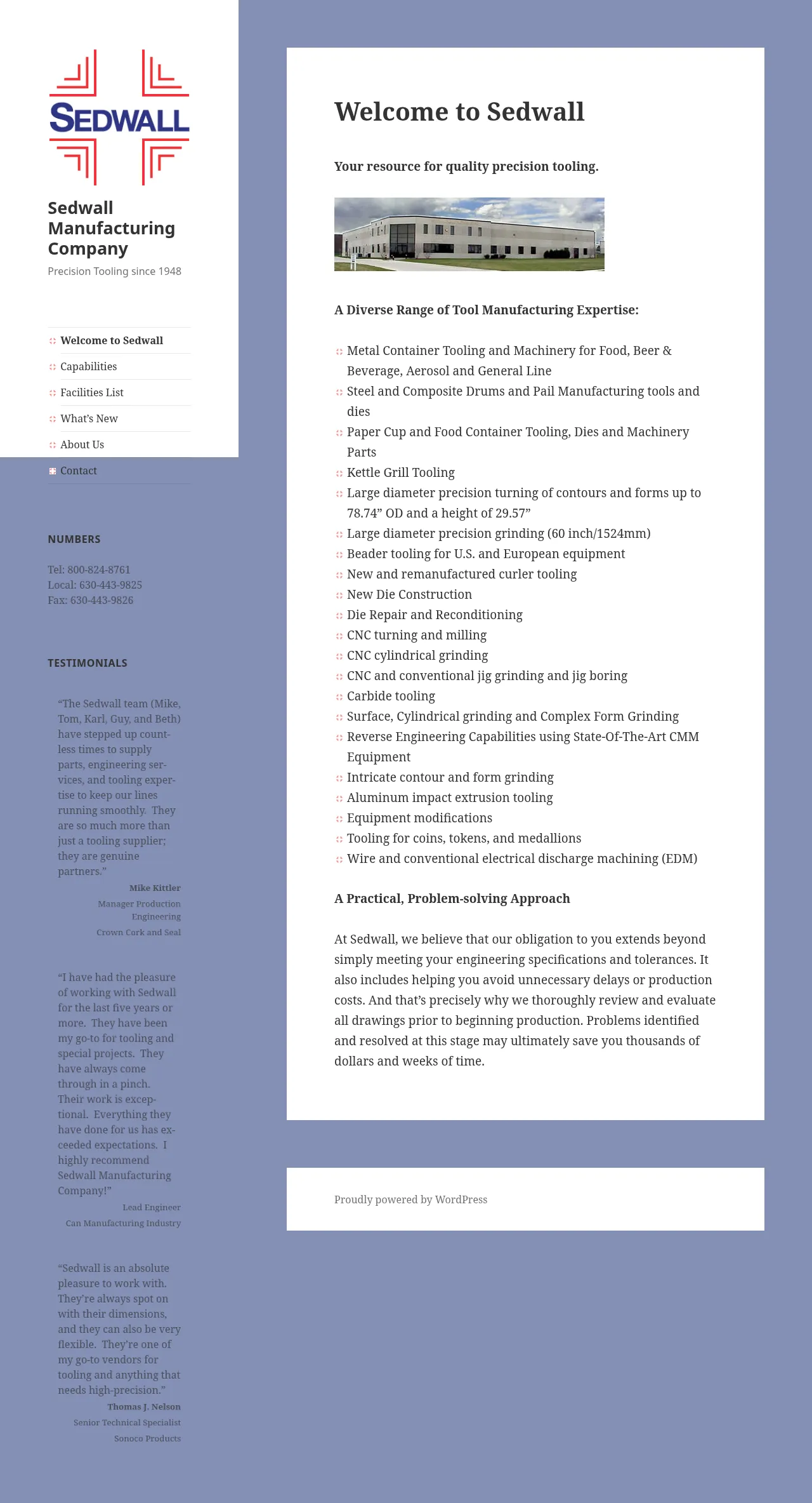 Sedwall Manufacturing Company has provided precision tooling services since 1948. The company specializes in the construction, repair, and reconditioning of dies and tooling for industries including metal container manufacturing, coin and medallion production, aluminum impact extrusion, and food container packaging. They offer advanced manufacturing capabilities such as CNC turning, milling, cylindrical and jig grinding, and electrical discharge machining. By performing thorough drawing evaluations prior to production, Sedwall aims to resolve engineering challenges early to minimize lead times and costs. Their facility features large-diameter turning and grinding capacity to accommodate complex industrial parts.