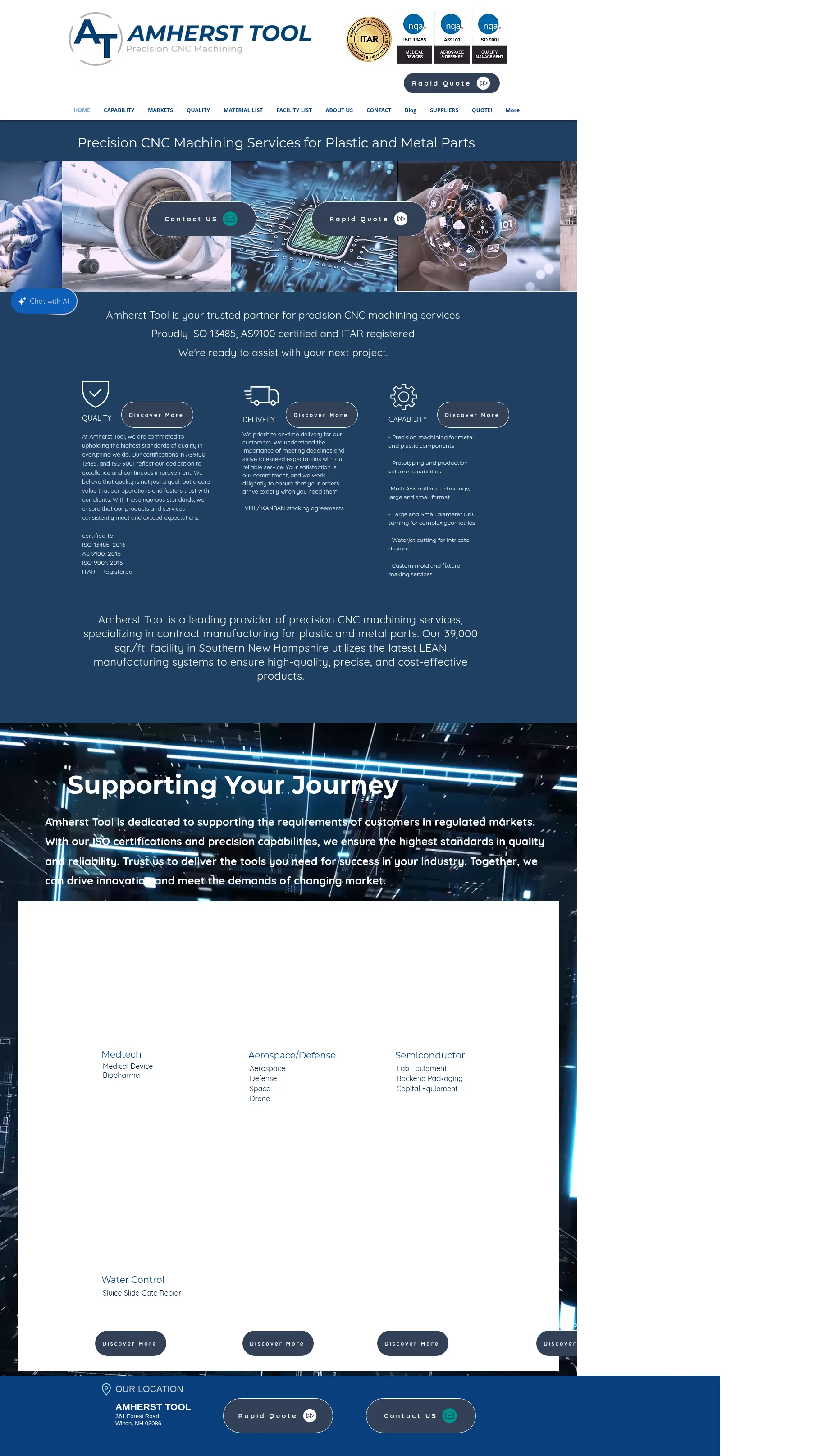 Amherst Tool is a contract manufacturer specializing in precision CNC machining of metal and plastic components. Operating from a 39,000 square-foot facility in Southern New Hampshire, the company utilizes LEAN manufacturing principles to provide cost-effective production services. They serve highly regulated markets including medical device, aerospace, defense, semiconductor, and biopharma industries. The company offers inventory management solutions such as VMI and KANBAN stocking agreements. Their operations are defined by rigorous quality standards and a commitment to on-time delivery for complex industrial components.