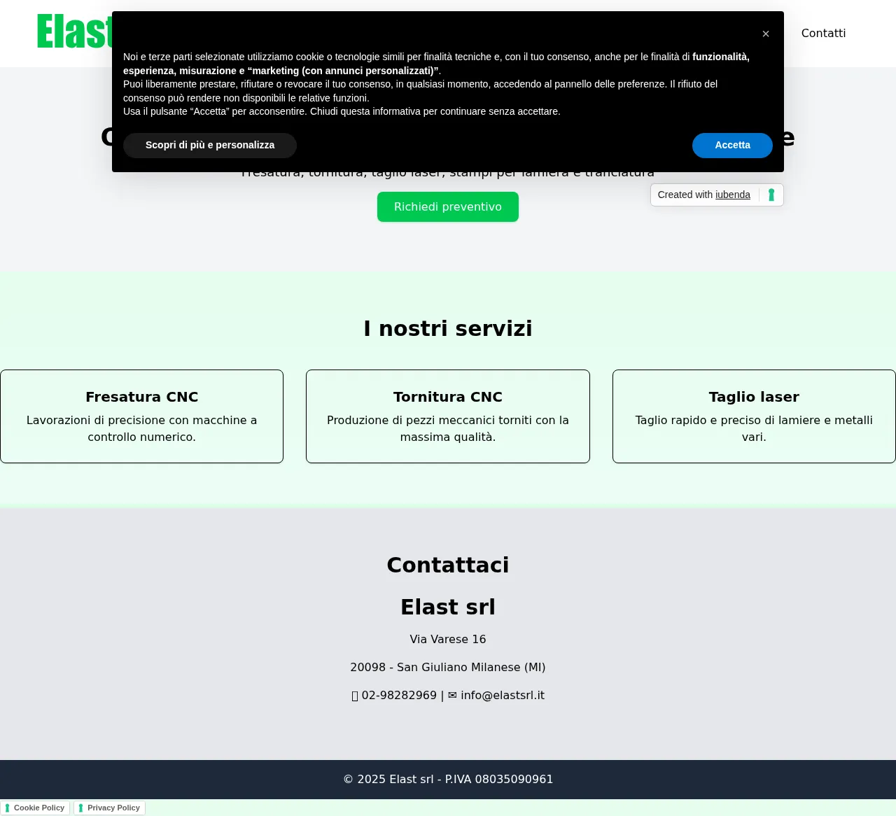 Elast s.r.l. is a metalworking machine shop based in San Giuliano Milanese, Italy. The company specializes in high-precision mechanical manufacturing, including CNC milling and turning services. They utilize advanced machining technologies to produce custom mechanical components for diverse industrial applications. In addition to precision machining, the facility provides laser cutting services for various metals. Their operations focus on delivering high-quality metal parts through standardized manufacturing processes.