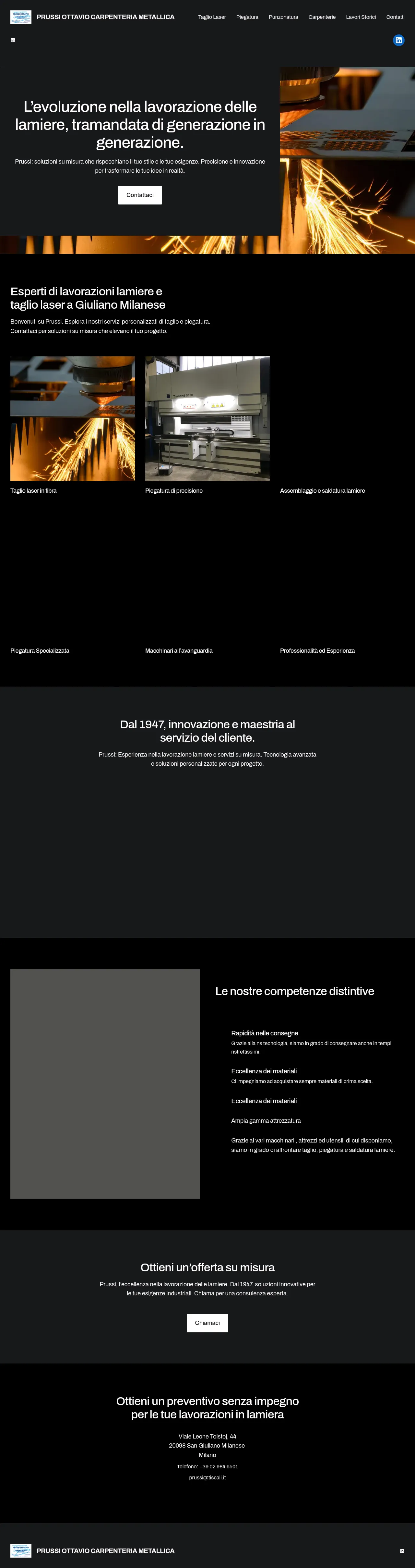 Prussi Ottavio Carpenteria Metallica is a family-operated metal fabrication company established in 1947. The firm specializes in sheet metal processing, including laser cutting, punching, bending, and assembly services. By leveraging advanced machinery and long-standing industry experience, the company provides high-precision solutions for various industrial applications. Their facility utilizes modern fiber laser technology to ensure rapid production times and high-quality results. The team focuses on delivering bespoke manufacturing projects tailored to specific client requirements.