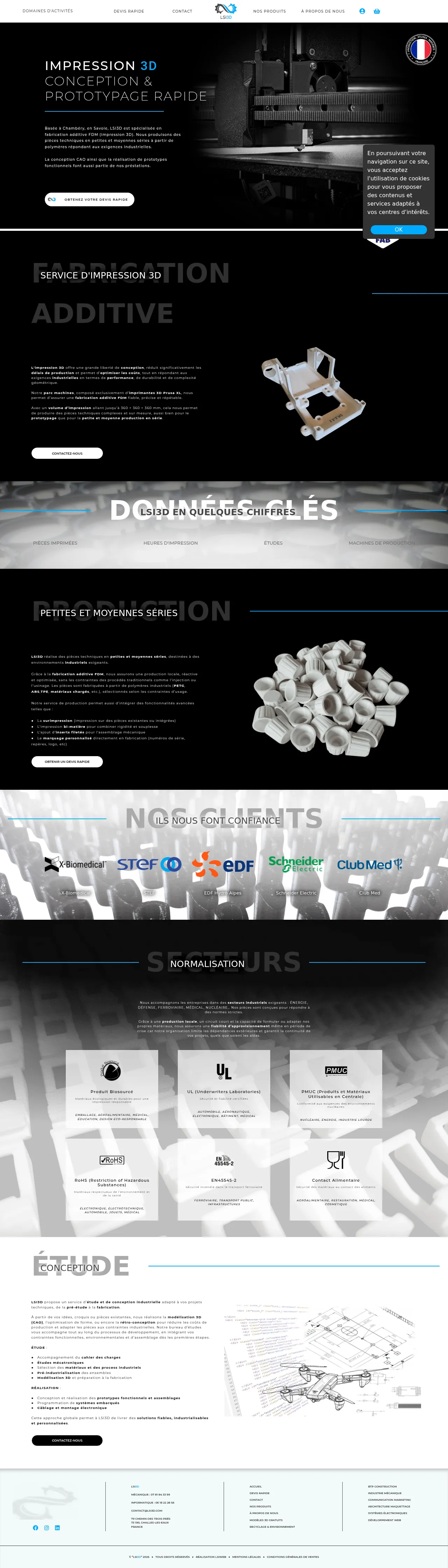 LSI3D is a French manufacturing firm based in Chambéry that specializes in FDM additive manufacturing. The company produces technical parts for small and medium-scale series, serving industries such as aerospace, medical, automotive, defense, and nuclear energy. Its core capabilities include 3D CAD design, functional prototyping, and customized industrial assembly. By maintaining a local supply chain and utilizing specialized materials, the company ensures reliable production even in challenging environments. The facility is equipped to handle complex geometric designs while meeting strict international safety and material standards.