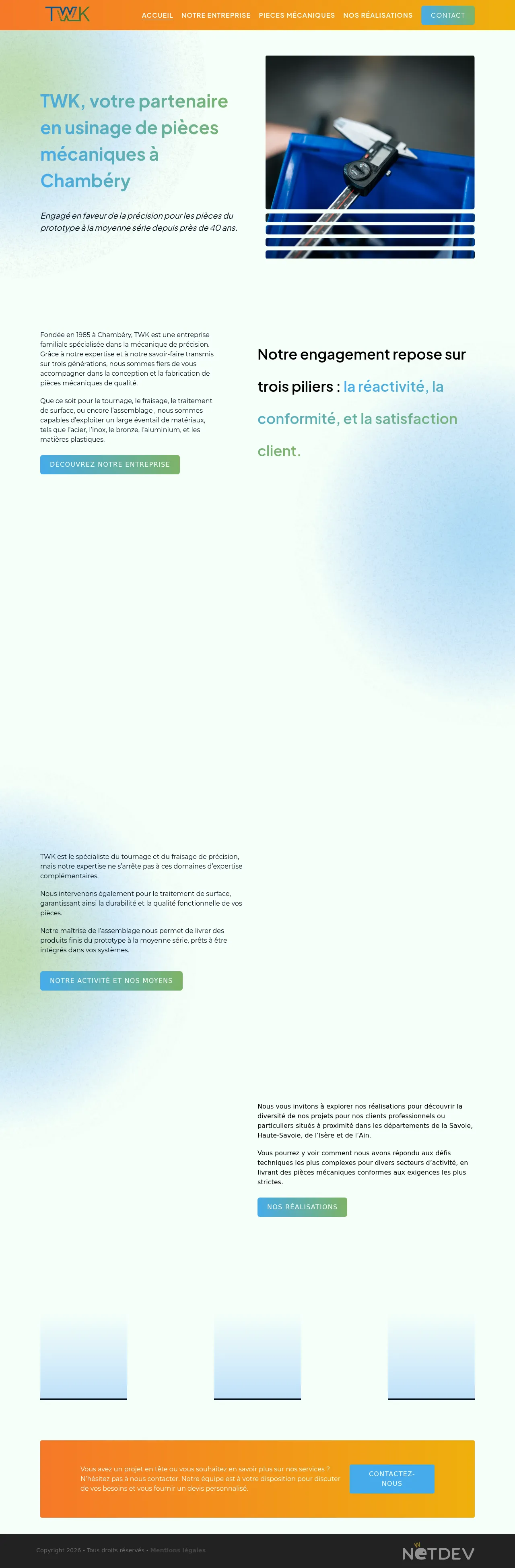 TWK is a precision manufacturing company specializing in high-quality CNC turning and milling services. The company provides comprehensive mechanical solutions, including surface treatment and component assembly, to support projects from prototyping to medium-run production. Serving both professional and private clients, TWK handles complex technical challenges for a diverse range of industries. Operations are primarily focused on the Savoy, Upper Savoy, Isère, and Ain regions. The company maintains a focus on delivering high-precision finished products ready for immediate system integration.