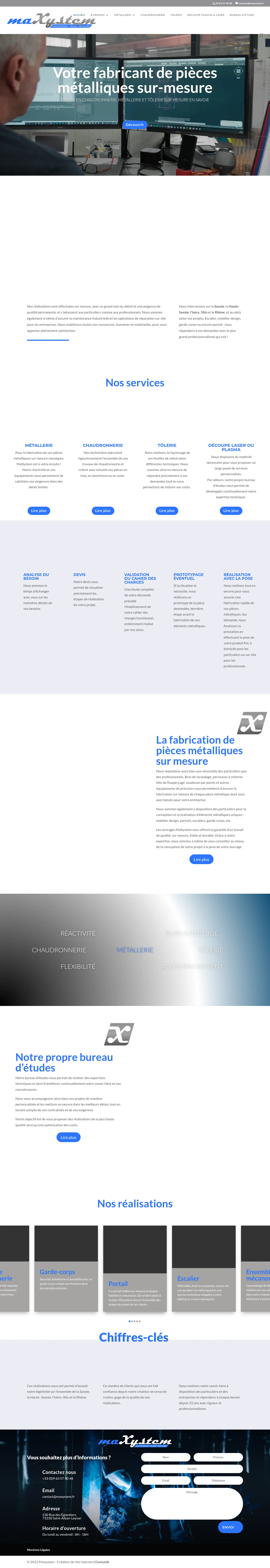 MaXystem is a metalworking company based in Saint-Alban-Leysse, France, specializing in boiler making, locksmithing, and custom sheet metal work. The company serves both industrial clients and private individuals, offering services that range from design and prototyping to fabrication and on-site installation. Their technical capabilities include plasma cutting, welding, bending, and mechanical assembly. MaXystem supports a diverse range of sectors, including electronics, data center infrastructure, and transportation, by providing durable and high-precision components. The company operates its own design office and collaborates with a network of local partners for specialized finishing and machining tasks.