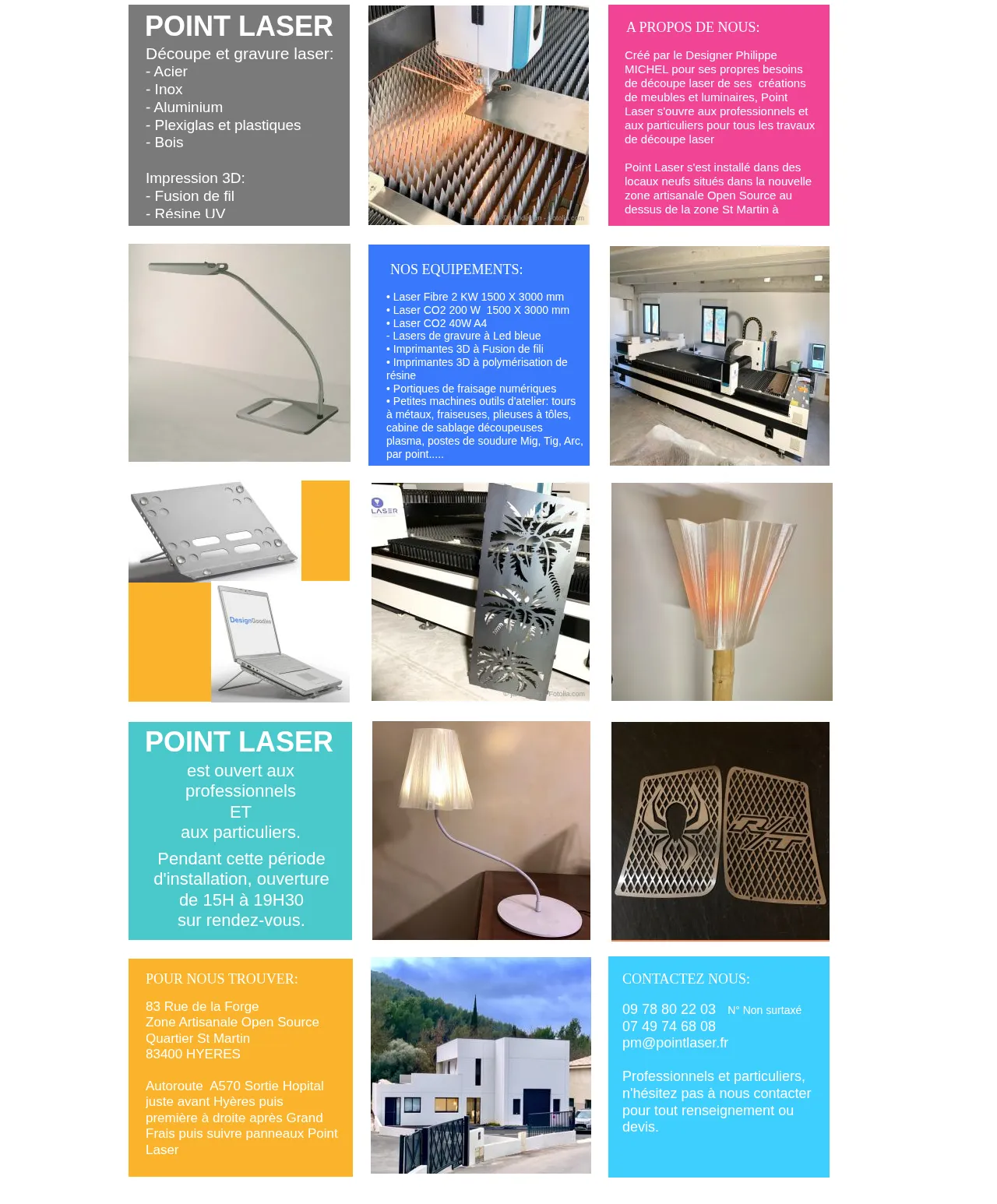 Point Laser is a specialized manufacturing facility based in Hyères, France, providing comprehensive metalworking and additive manufacturing solutions. The company serves both professional and private clients, offering precision laser cutting, engraving, and 3D printing services. Their facility is equipped with a versatile range of machinery for metal fabrication, including welding and CNC milling capabilities. Point Laser focuses on delivering custom fabrication projects using diverse materials ranging from industrial metals to specialized plastics. They maintain a fully equipped workshop designed to handle various scales of production from prototyping to small batch manufacturing.