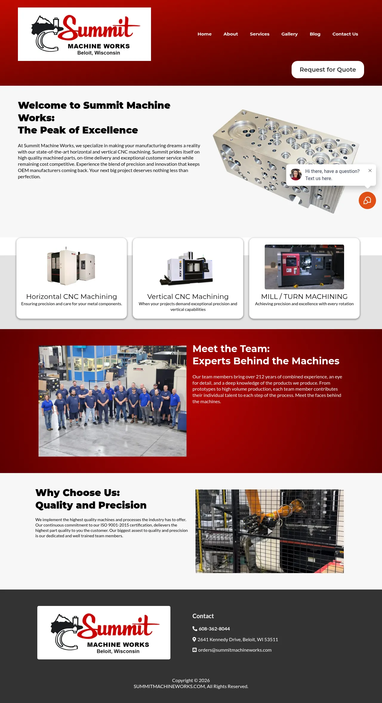 Summit Machine Works is a precision machining company based in Beloit, Wisconsin, that has served the automotive, papermaking, food, and hydraulic industries since 1961. The company specializes in the production of hydraulic manifolds, valve bodies, and complex machined components. Utilizing advanced CNC machining technologies, including horizontal and vertical machining centers, they support projects ranging from prototyping to high-volume production. Their climate-controlled facility and ISO 9001:2015 certification underscore a commitment to maintaining high quality standards and precision engineering. The family-operated business focuses on delivering reliable manufacturing solutions with a strong emphasis on customer service and on-time delivery.