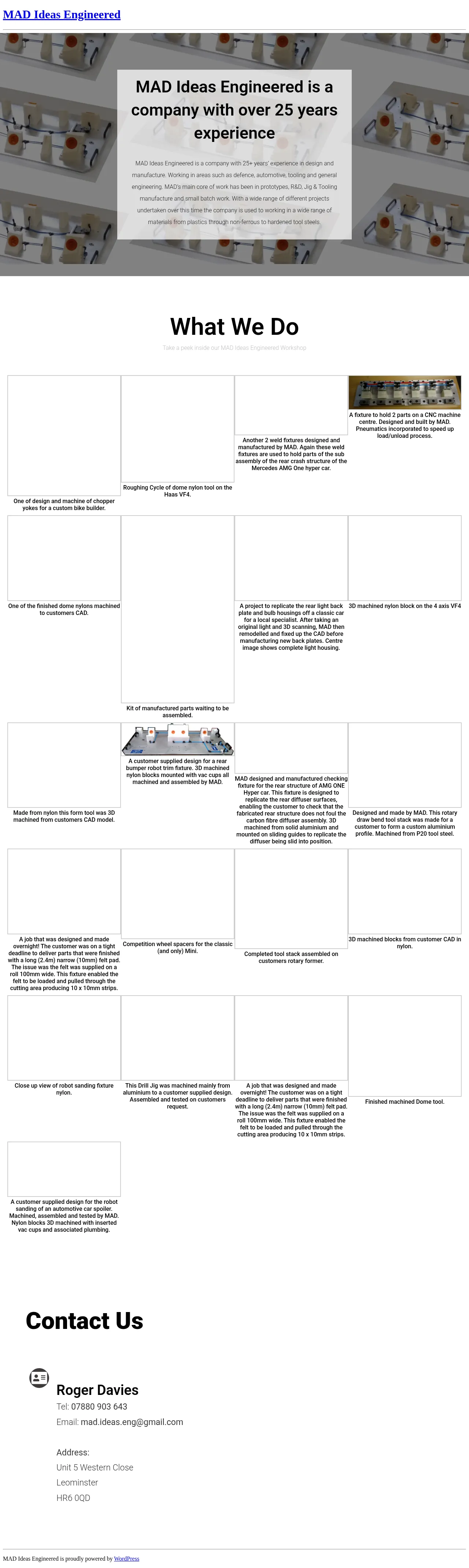 MAD Ideas Engineered is a precision manufacturing company with over 25 years of experience in custom design and machining. The firm specializes in producing specialized checking fixtures, weld fixtures, and robotic sanding tools for the automotive and industrial sectors. Their capabilities include advanced 3D scanning, CAD modeling, and custom CNC machining of complex components. By leveraging a diverse range of materials and precision equipment, they provide tailored engineering solutions for high-performance automotive projects and specialized manufacturing needs. The company serves clients by delivering end-to-end support from initial design and 3D modeling through to final assembly and testing.