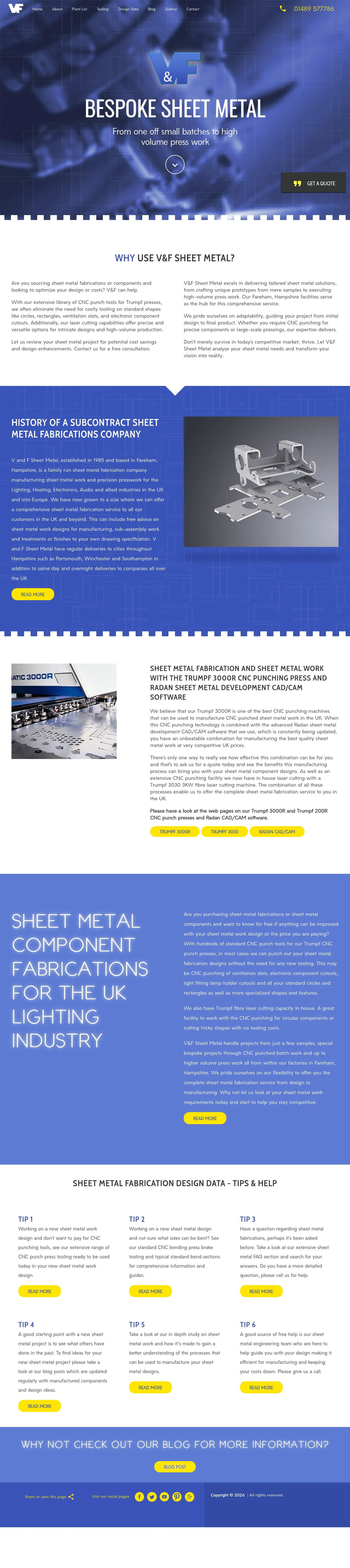 V and F Sheet Metal is a family-run fabrication company established in 1985, specializing in precision sheet metal work for the lighting, heating, audio, and electronics industries. Based in Fareham, Hampshire, the company provides end-to-end manufacturing solutions including laser cutting, CNC punching, bending, and welding. They utilize advanced CAD/CAM software and state-of-the-art machinery to produce bespoke enclosures, brackets, and panels for both small-batch prototypes and large-scale production runs. The company emphasizes a collaborative design approach, offering technical expertise to optimize manufacturing efficiency and material usage. By maintaining a comprehensive in-house facility, they ensure consistent quality and flexible delivery timelines for clients across the UK.