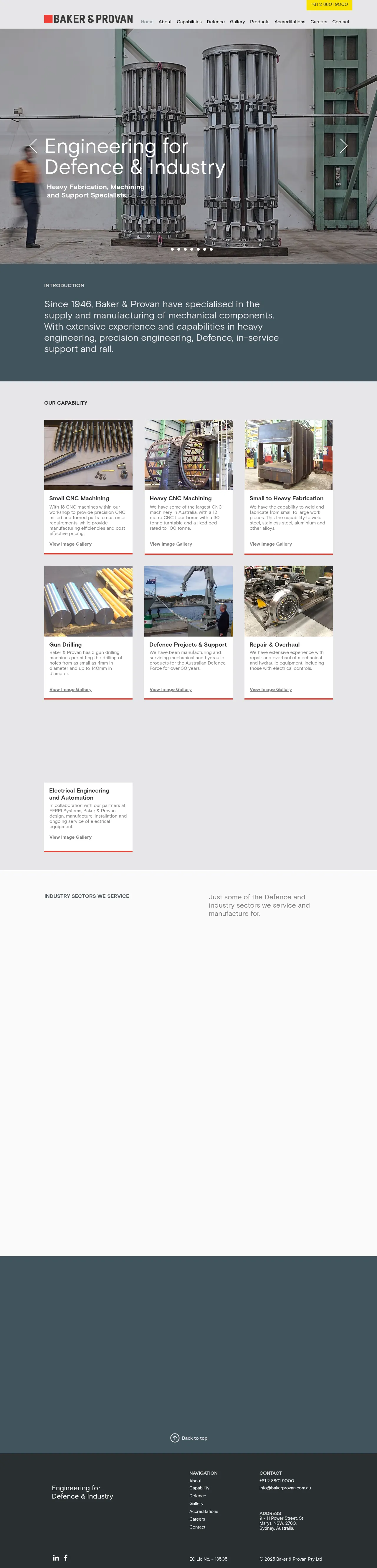 Baker Provan is a multi-disciplinary engineering firm based in Australia that specializes in precision machining, heavy fabrication, and electrical automation. The company serves a diverse range of sectors, including defence, rail, mining, and heavy industry, providing services from design and engineering to repair and overhaul. They operate a significant 6,500 square metre facility equipped for small to heavy mechanical projects. Additionally, the company develops and manufactures the Proven Fuel Management (PFM) system, an innovative solution for cleaning diesel fuel through magnetic and ultraviolet treatment. Baker Provan maintains strong capabilities in electrical engineering, control panel integration, and turnkey project delivery.