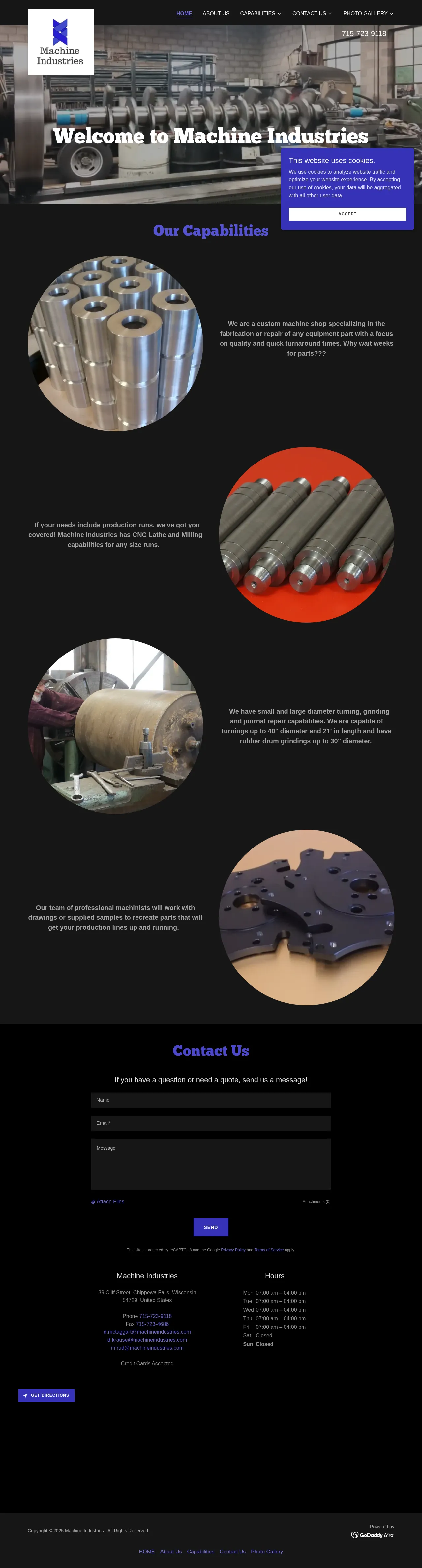 39 Cliff St, Chippewa Falls, WI 54729, USA, Eau Claire, Wisconsin, United States(715) 723-9118d.krause@machineindustries.comhttp://www.machineindustries.com/