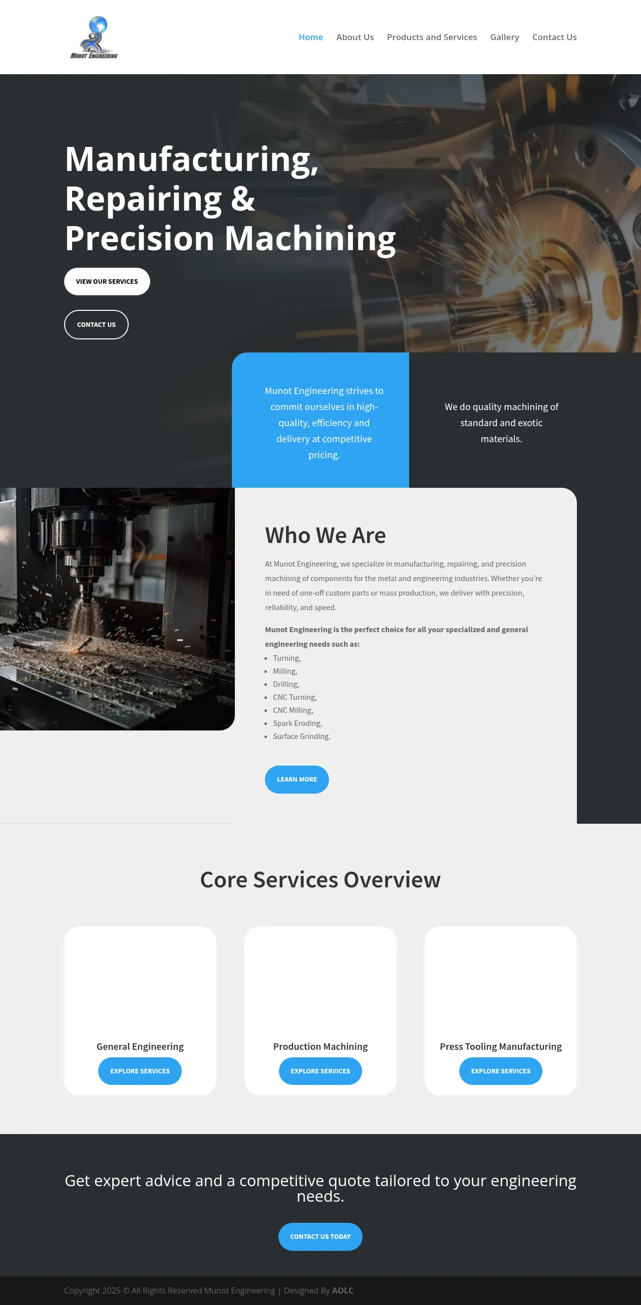 Munot Engineering is a provider of precision machining and general engineering services catering to the metal and engineering sectors. The company specializes in manufacturing and repairing components, offering capabilities ranging from one-off custom parts to high-volume mass production. Their technical expertise includes diverse machining processes such as CNC milling, turning, and spark erosion. Committed to efficiency and precision, the firm serves clients requiring high-quality results for specialized industrial applications. The organization emphasizes competitive pricing and reliable delivery schedules for all manufactured components.