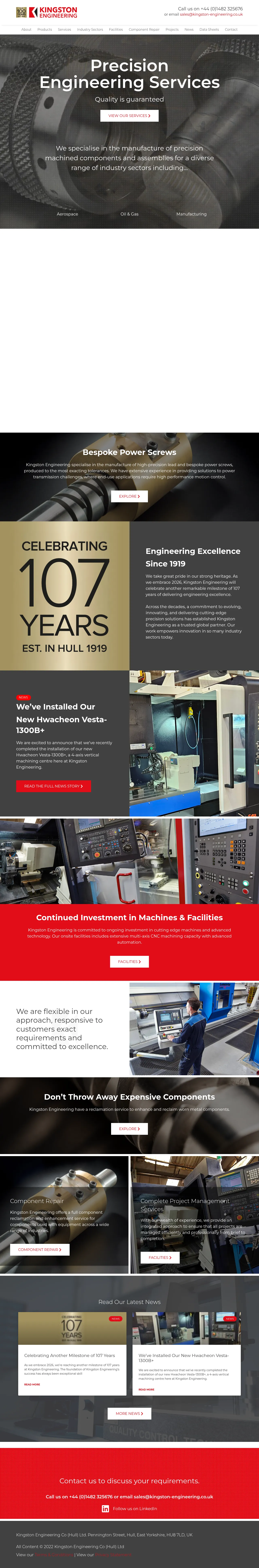Kingston Engineering manufactures precision machined components and assemblies for a range of industry sectors, including aerospace and general manufacturing. The company specialises in high-precision lead and bespoke power screws and operates multi-axis CNC machining with advanced automation. Services include component repair and end-to-end project management from specification through to delivery. Founded in 1919, Kingston Engineering has a long heritage in precision engineering.
