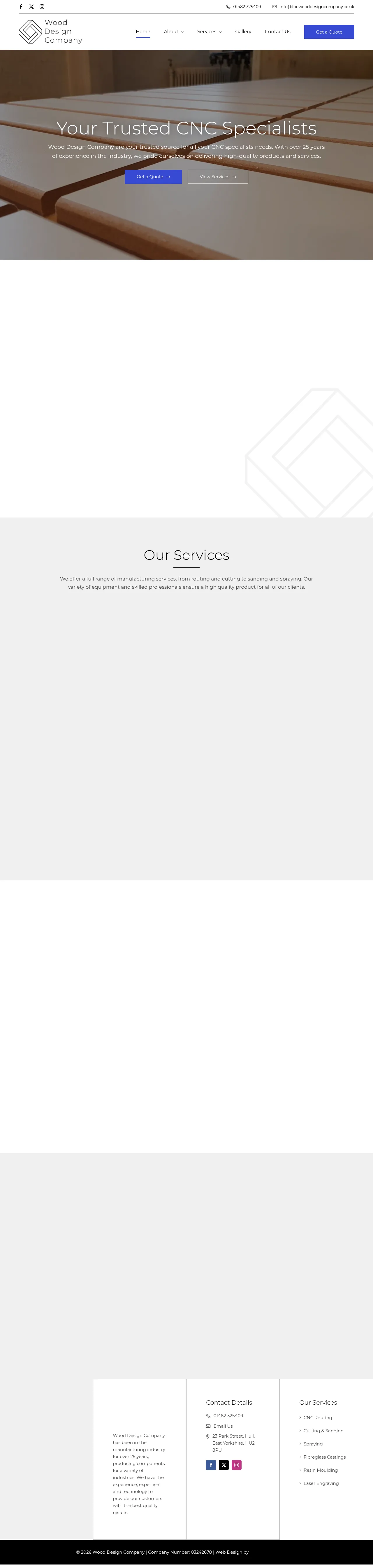 Wood Design Company is a UK manufacturer specialising in precision CNC machining and woodworking. With over 25 years of experience, the company supplies components and finished parts for a wide range of sectors, from single prototypes to large production runs. Its 4,000 sq ft workshop houses specialist equipment for routing, finishing, resin and fibreglass moulding, and laser engraving. The business also provides nationwide delivery for completed orders.