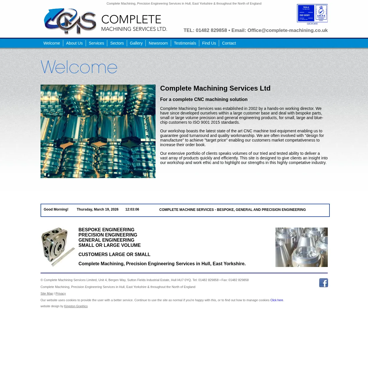 Established in 2002, Complete Machining Services Ltd is a Hull-based CNC and precision engineering company. It produces bespoke parts and undertakes both low- and high-volume production runs for small businesses through to blue-chip clients, operating to ISO 9001:2015. The workshop uses modern CNC machine tools and offers design-for-manufacture support to meet target pricing and improve customer competitiveness.