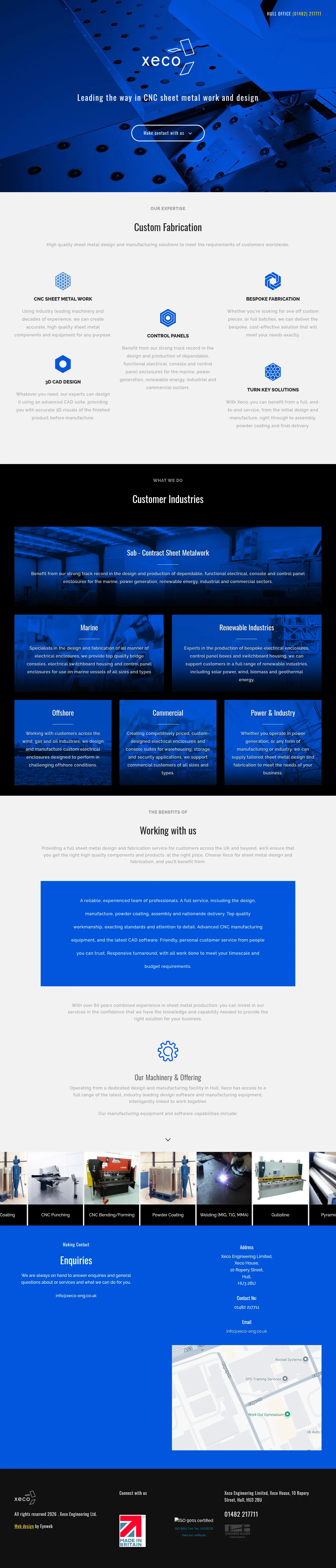 Xeco Engineering Limited provides CNC sheet metal design and fabrication services, including 3D CAD design and manufacture of electrical enclosures and control panels. The company offers end-to-end services from design and fabrication through powder coating, assembly and delivery from its manufacturing facility in Hull. Xeco serves marine, renewable energy, offshore and commercial sectors and undertakes both one-off and batch production. The team has decades of combined experience in sheet metal production and CNC manufacturing.