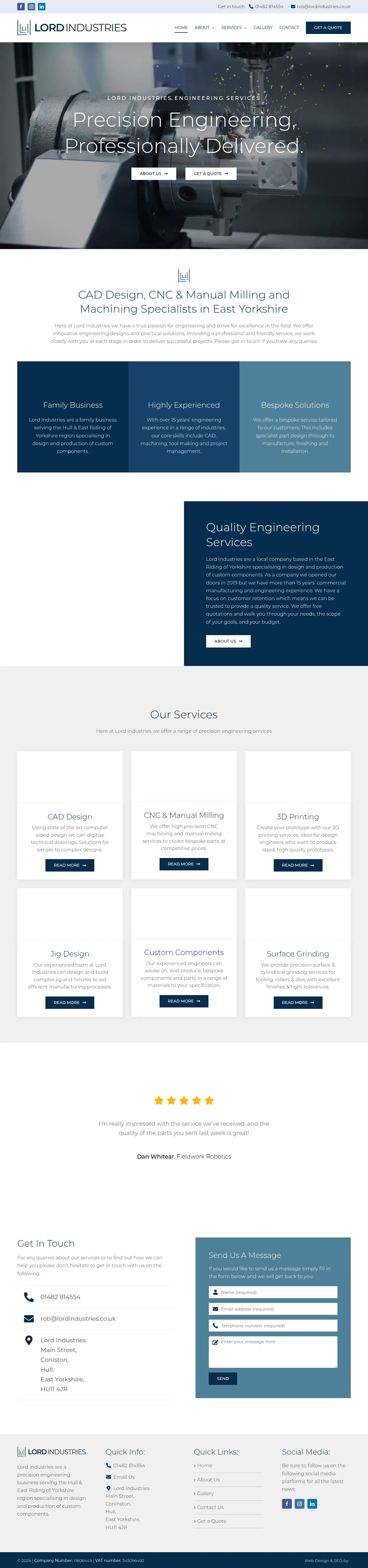 Lord Industries provides precision engineering and manufacturing services, specializing in design and production of bespoke components and prototypes. Capabilities include CAD design, 3D printing, surface grinding, CNC and manual milling, and the design and manufacture of jigs and fixtures. The company works with clients through each project stage to deliver practical engineering solutions.