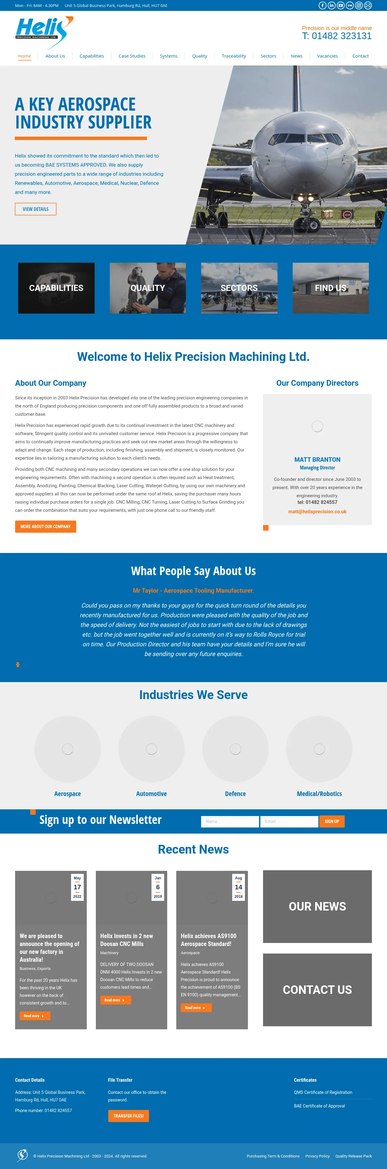 Helix Precision Machining Ltd is a precision engineering and subcontract manufacturing company based in Hull, UK. The business supplies aerospace and other high-spec industries with CNC milling, turning and multi-axis machining, including 5-axis and mill-turn capabilities. It also provides CAM/NC programming, kitting, packing and dispatch services and supports complex component manufacture for major programmes.