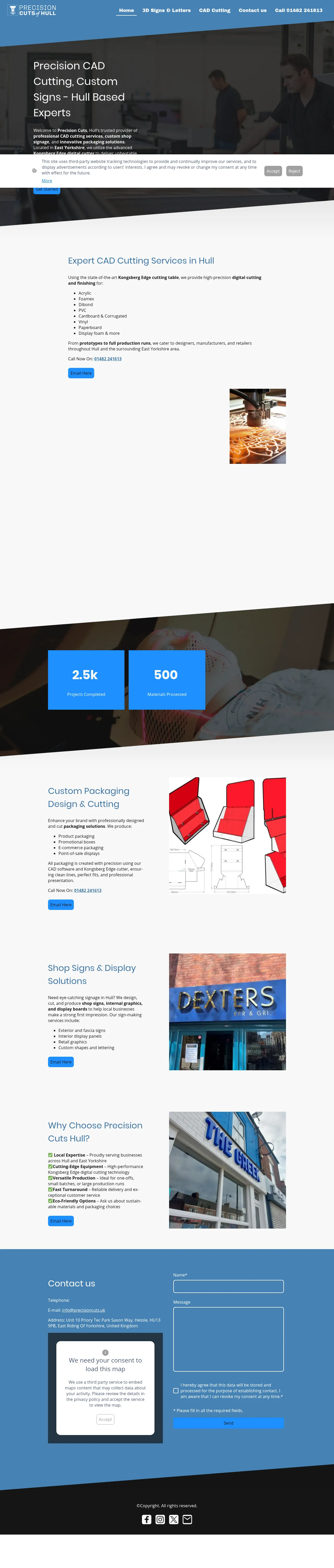 The company provides CNC and laser cutting services for prototypes through full production runs, producing signage, display units and bespoke components. It offers full design, manufacture and installation of 3D signage and uses digital cutting technology to deliver consistent results. The business also advises on material and packaging choices, including sustainable options, and serves customers across Hull and East Yorkshire.