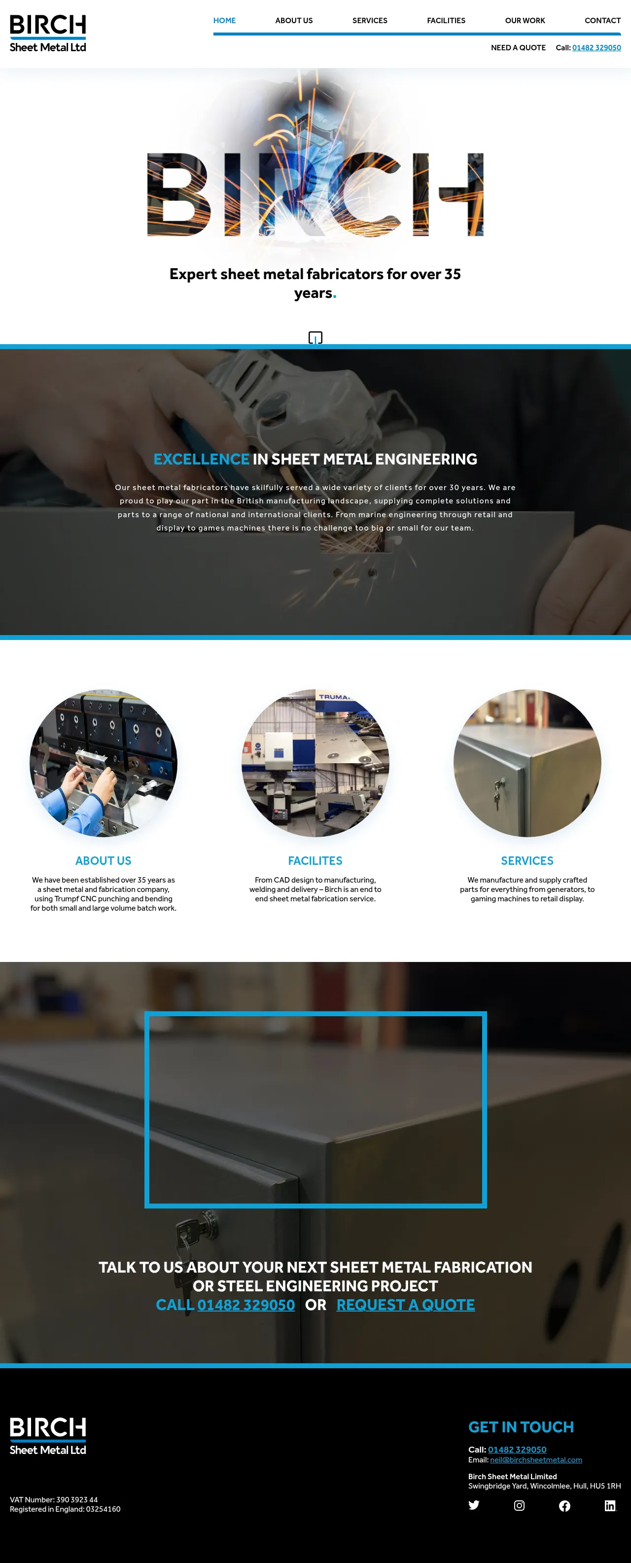 Birch Sheet Metal Limited is a sheet metal fabrication company based in Hull, UK. It offers end-to-end services including CAD/CAM design, CNC punching and bending, welding and batch manufacture from a 750 sqm facility on Wincolmlee. The company produces components in mild steel, stainless steel, Zintec, Plastisol and aluminium and supports prototyping, Kanban stockholding and volume production for a range of industries.