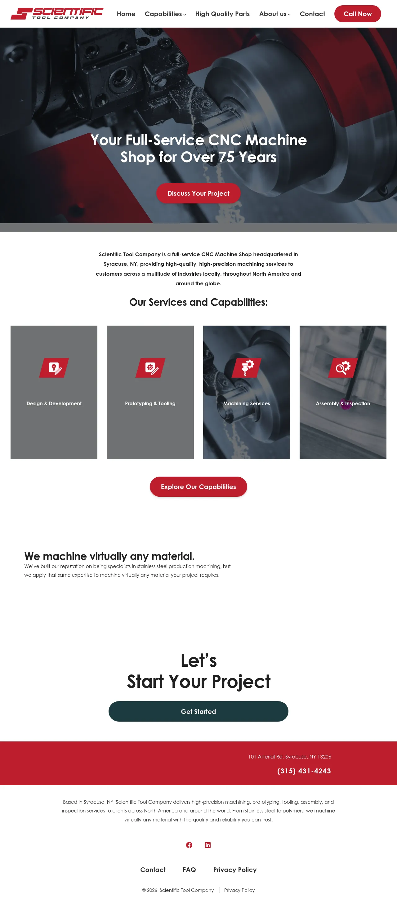 Scientific Tool Company is a full-service CNC machine shop based in Syracuse, New York, with over 75 years of experience in precision machining and assembly. The firm provides manufacturing solutions including prototyping, CNC milling, turning, and grinding for high-demand sectors such as aerospace, defense, automotive, and medical device manufacturing. They specialize in the production of high-performance microwave bandpass filters and complex stainless steel components. Utilizing advanced multi-axis machining and rapid prototyping, the company delivers custom-engineered parts with tight tolerances and consistent quality. They maintain a commitment to professional craftsmanship and rigorous inspection standards across all stages of the product development lifecycle.