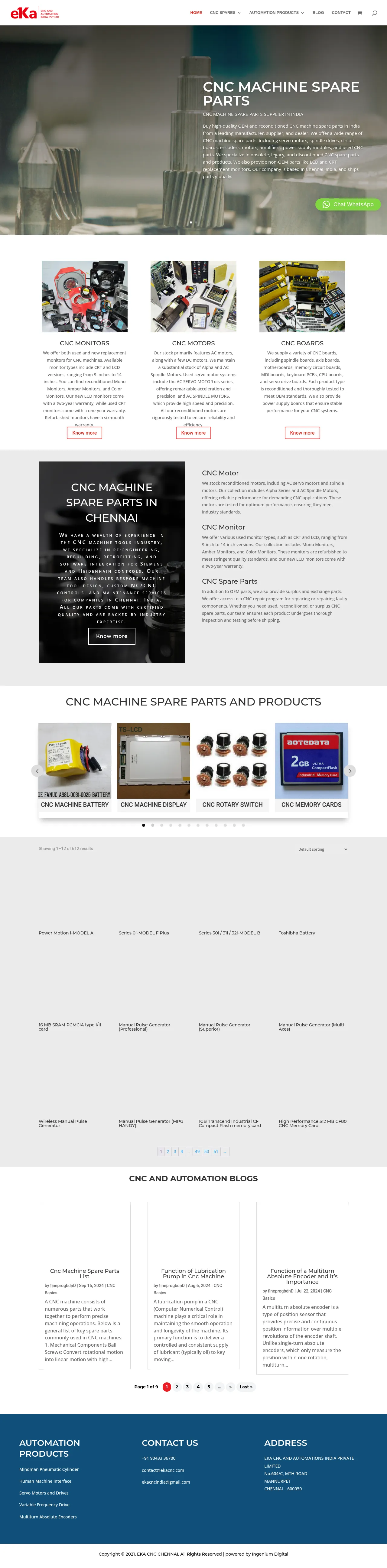EKA CNC supplies OEM and reconditioned CNC machine spare parts from its Chennai facility and ships globally. The company stocks components such as servo motors, spindle drives, circuit boards, encoders, amplifiers and power modules, and specialises in obsolete, legacy and used CNC parts as well as non‑OEM replacement monitors. It also provides engineering services including re‑engineering, rebuilding, retrofitting, software integration for Siemens and Heidenhain controls, bespoke machine tool design, custom NC/CNC control development and maintenance.