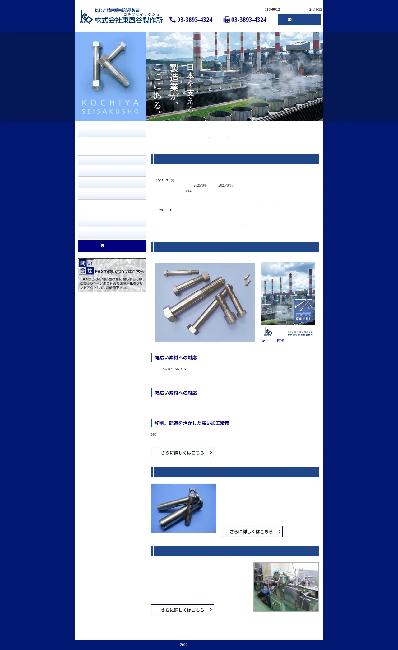 Kochiya Manufacturing Co., Ltd. is a precision metal machining company based in Arakawa-ku, Tokyo, specializing in the production of high-precision bolts and custom industrial components. Their technical expertise includes high-precision CNC turning, thread rolling, and the manufacturing of special alloy bolts such as SNB7 and SNB16. The company supports a wide range of production needs, from high-mix low-volume orders to rapid-turnaround requirements for standard and non-standard parts. They maintain rigorous quality standards through the use of precision gauges and can provide comprehensive documentation, including material test reports and heat treatment certificates. Their capabilities extend to various threading types, including metric, inch, unified, left-hand, square, and taper threads.