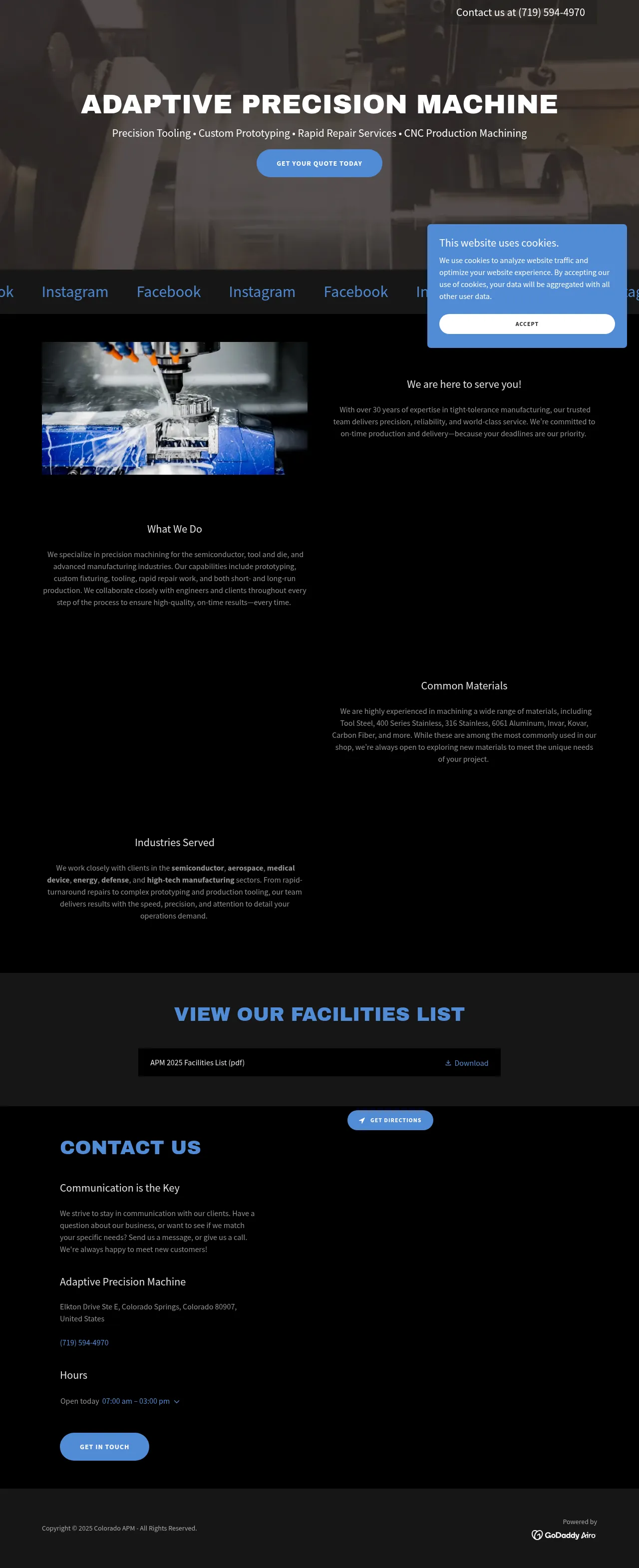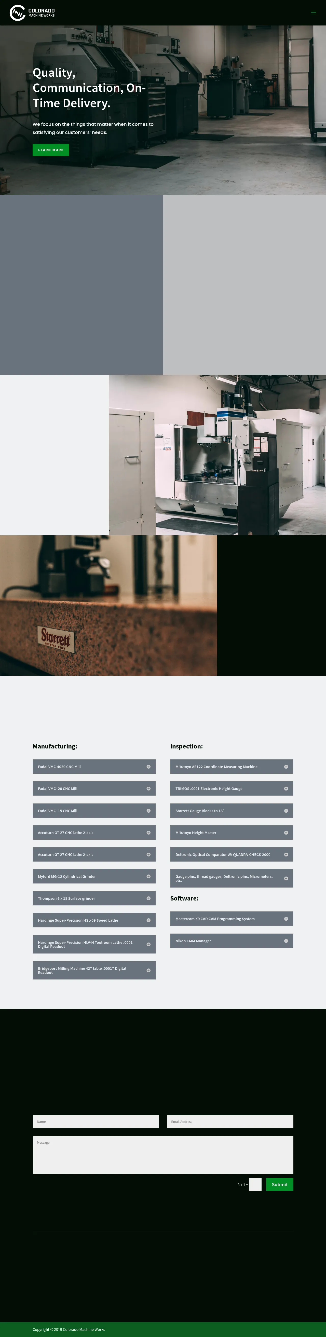 Colorado Machine Works provides precision contract machining and small-batch manufacturing services, including prototypes, tooling, and short production runs. The company operates CNC mills and lathes alongside manual machining and inspection equipment to deliver parts to customer specifications. It emphasizes quality, dependability, and customer service in its manufacturing work.