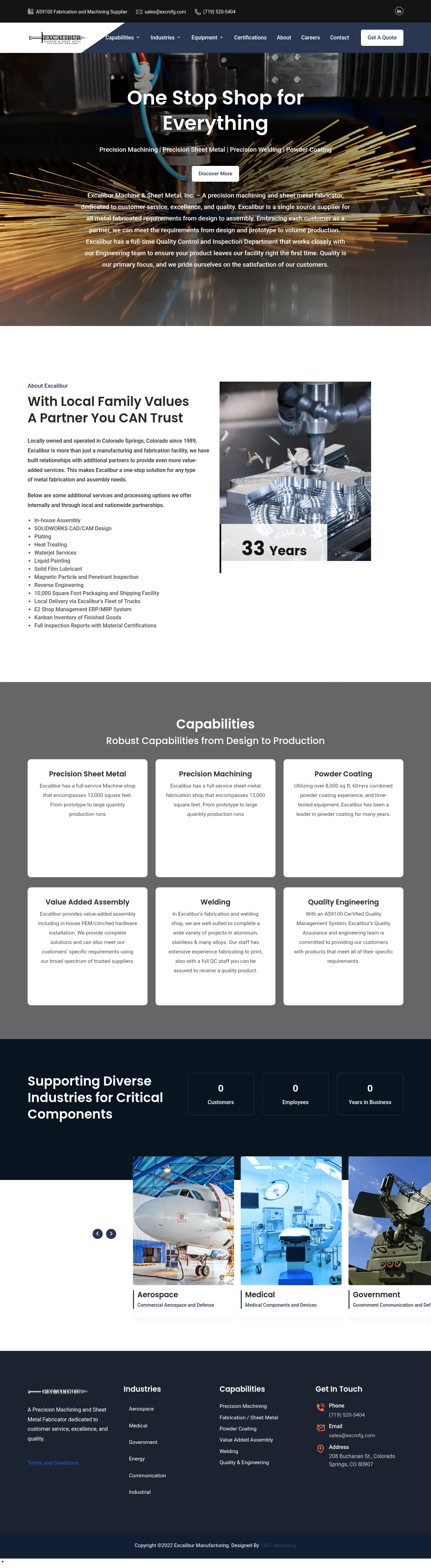 Excalibur Machine & Sheet Metal, Inc. is a precision machining and sheet metal fabrication company serving the aerospace sector. The company provides single-source metal work from design and prototyping through value-added assembly and volume production. A dedicated Quality Control and Inspection department works with engineering to ensure products meet specifications before shipment.