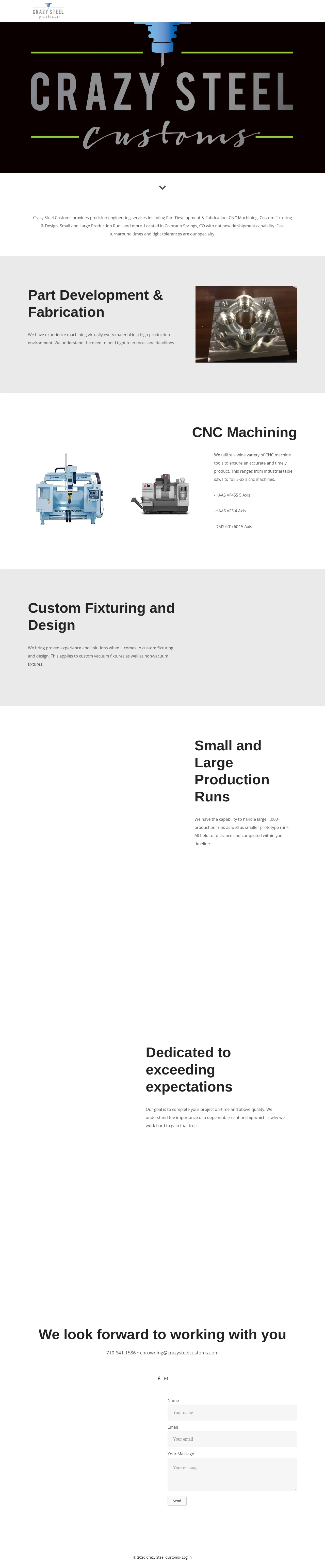 Crazy Steel Customs is a precision engineering and fabrication shop based in Colorado Springs, Colorado. The company provides part development, CNC machining, custom fixturing and both prototype and production runs, and ships nationwide. It emphasizes tight tolerances and fast turnaround for high-production environments.