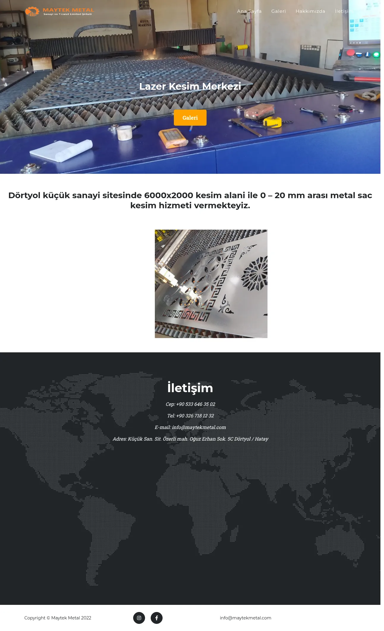 Maytek Metal is a professional manufacturing facility specializing in high-precision laser cutting services. Based in Hatay, the company provides expert metal processing solutions for clients across the Dörtyol and Payas regions. Their core offerings include industrial-grade laser cutting for various metal sheets, ensuring accurate and efficient material fabrication. With a focus on quality and reliability, the company operates as a centralized hub for metal machining needs. They utilize advanced cutting technology to meet the technical requirements of their regional clientele.