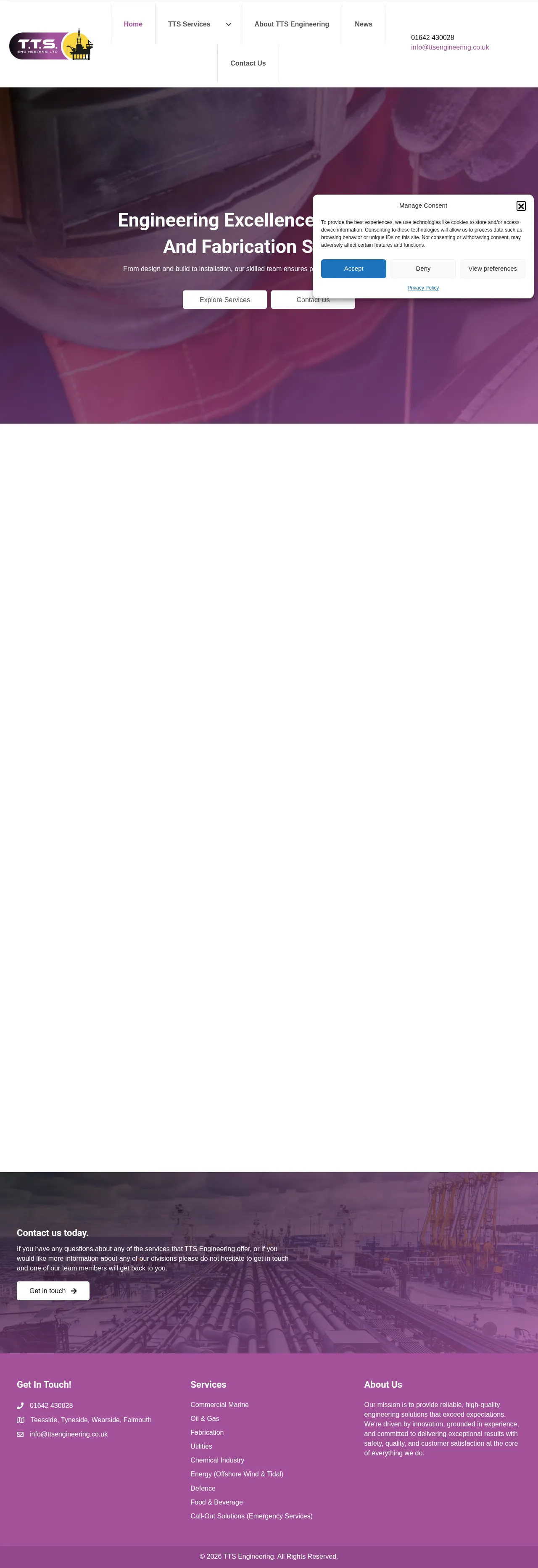 TTS Engineering provides comprehensive pipework and fabrication services across the United Kingdom. With a presence in Teesside, Tyneside, Wearside, and Falmouth, the company supports a diverse range of sectors, including oil and gas, marine, energy, defence, and chemical industries. Their service portfolio spans design, engineering, and on-site installation, supplemented by 24/7 emergency call-out solutions. The firm manages complex projects such as pipework replacements, manifold fabrication, and bespoke structural installations. They are recognized for their technical precision and long-standing experience in industrial engineering operations.