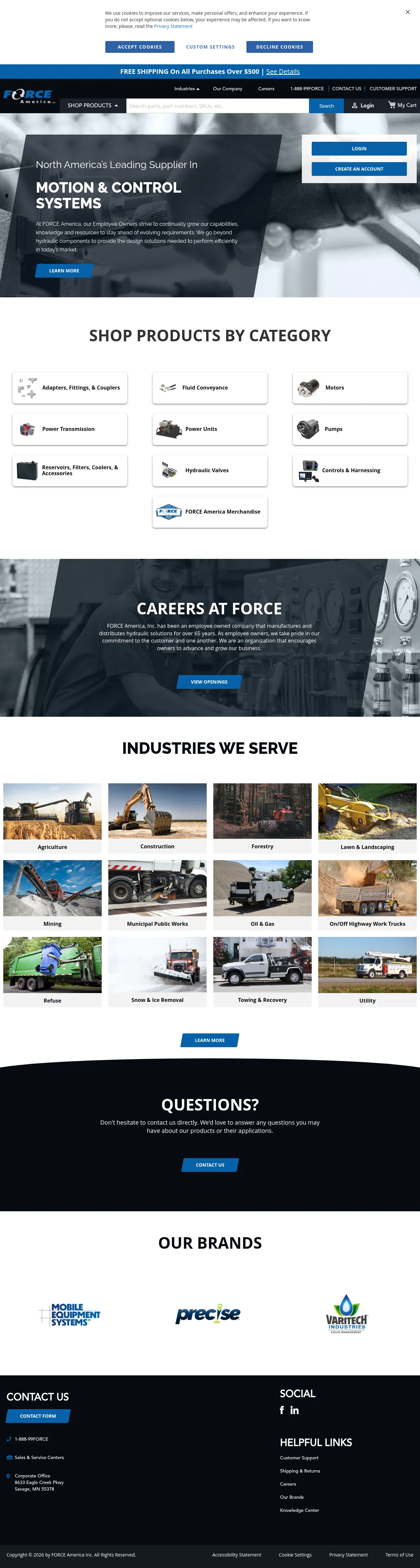 FORCE America is a leading supplier of mobile hydraulic power and control systems, serving clients in industries such as agriculture, construction, mining, forestry, and municipal public works. The company provides a comprehensive suite of hydraulic solutions including power units, pumps, motors, valves, and fluid conveyance components. With a network of 15 sales and service centers across the United States, they manage an extensive inventory to support maintenance and operational requirements. The organization emphasizes technical expertise and design support to ensure efficient system performance for both on- and off-road applications. As an employee-owned business, they focus on reliable customer service and rapid fulfillment of complex industrial needs.