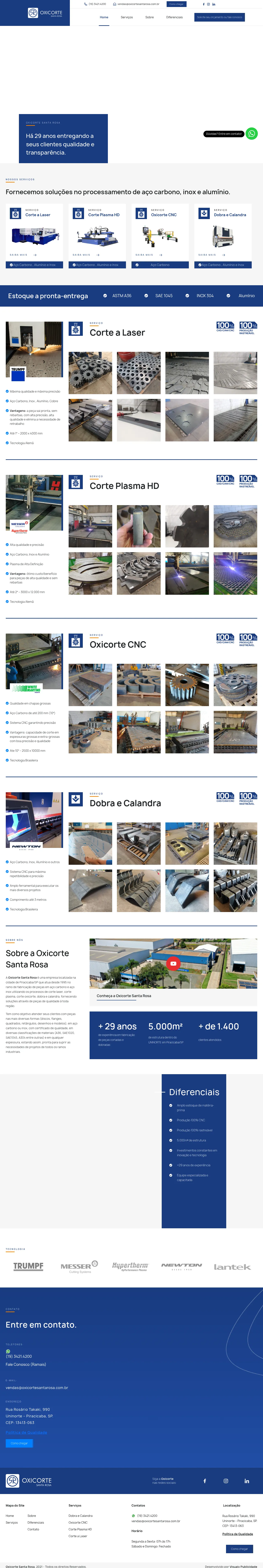 Oxicorte Santa Rosa is a metal fabrication company based in Piracicaba, São Paulo, operating since 1995. The company manufactures parts in carbon steel and stainless steel using laser cutting, high-definition plasma, oxy-fuel cutting, bending and plate rolling. Operations emphasize CNC processing and traceability for regional industrial customers.