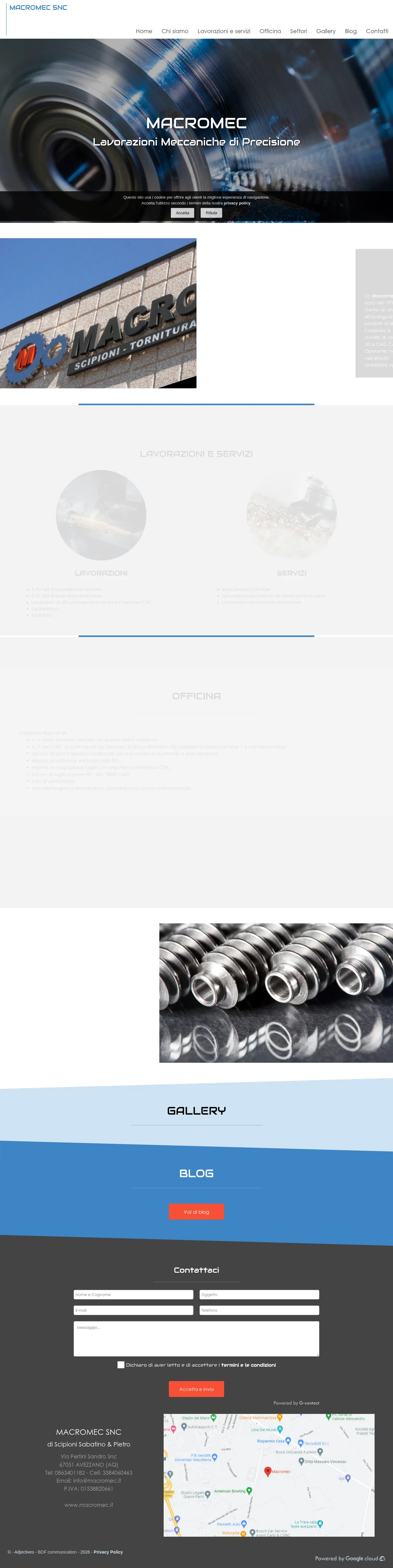 Macromec Snc is a precision machining company based in Avezzano, Italy, with roots dating back to 1970. The firm specializes in CNC turning, milling, and specialized mechanical production for clients in the pharmaceutical, robotics, agricultural, and military sectors. They utilize advanced 3D CAD and CAM software to manage project design, simulation, and execution. By maintaining a highly equipped facility and a temperature-controlled metrology laboratory, the company ensures high-quality production standards and precise delivery timelines. Their operations include full supply manufacturing as well as third-party contract work.