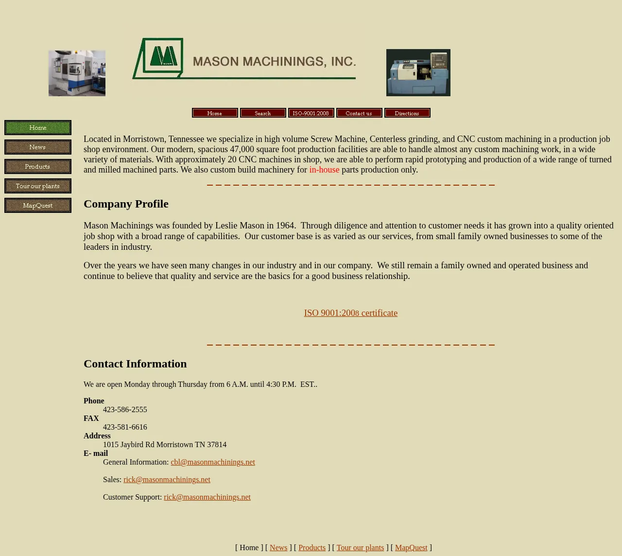 1015 Jaybird Rd, Morristown, TN 37814, USA, Mason, Ohio, United States(423) 586-2555cbl@masonmachinings.nethttp://masonmachinings.net/