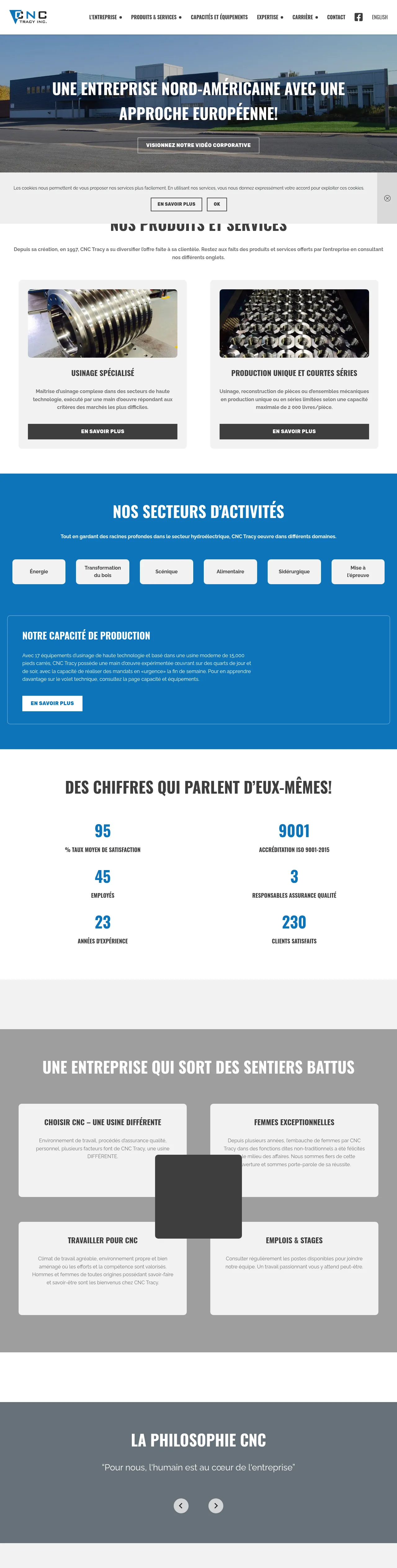 CNC Tracy is a specialized manufacturing facility located in Sorel-Tracy, Quebec, focused on complex precision machining. Operating from a 15,000 square foot facility, the company provides expert services in CNC turning, milling, and mechanical assembly for single-part and short-run production. They serve diverse industries including hydroelectricity, food processing, energy, and steel manufacturing. The company is characterized by a strong commitment to quality, maintaining ISO 9001:2015 certification since 2004 and utilizing advanced machining technologies. Their workforce combines experienced personnel with ongoing training programs to meet demanding technical specifications and delivery schedules.